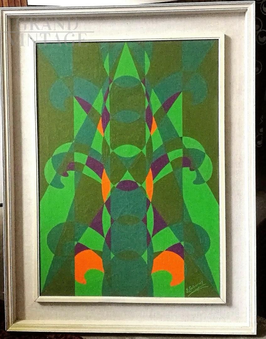 Dipinto post futurista di Fernando Gutierrez de Velasco, firmato e titolato Totem, acrilico su tela del1969.