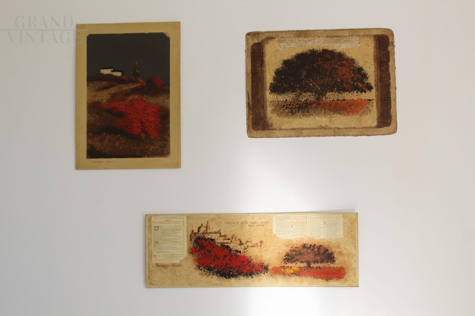 Trittico di dipinti di Antonio Minezzi su cartone invecchiato