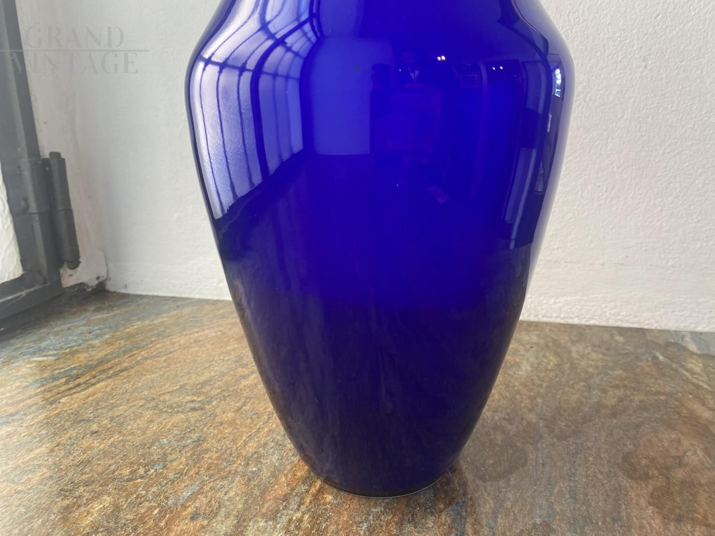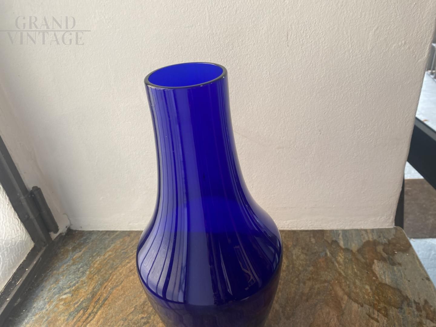 Vaso in vetro di Murano blu firmato Laura De Santillana