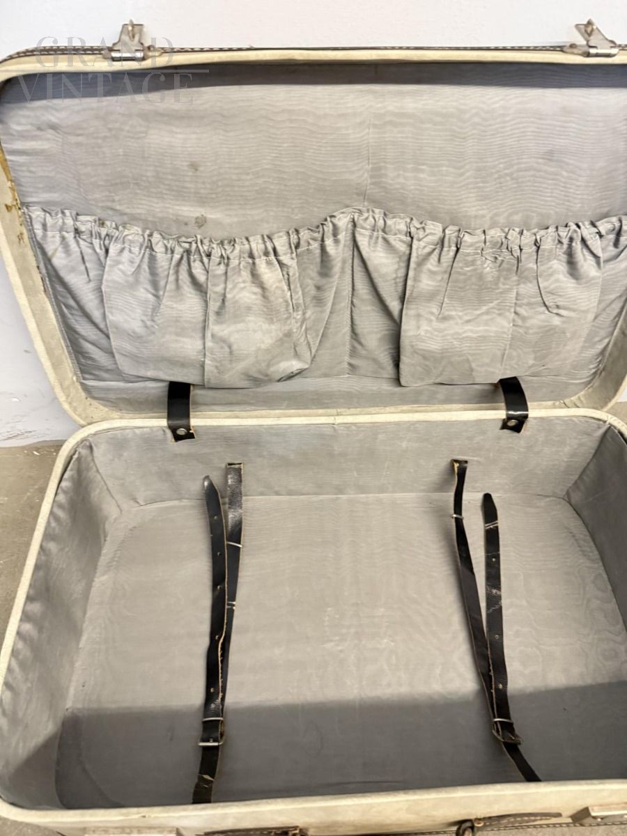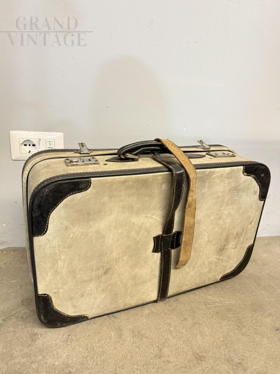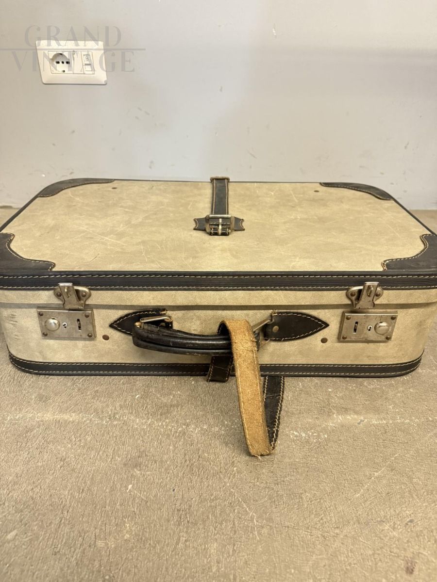 Valigia vintage in pelle avorio e cuoio nero, Italia anni '50
