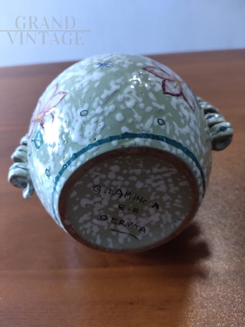 Vaso ad anfora in ceramica Deruta firmato G. Lamincia