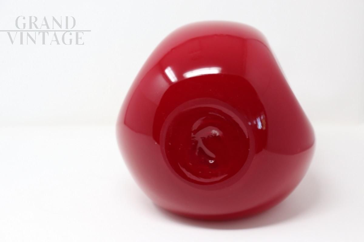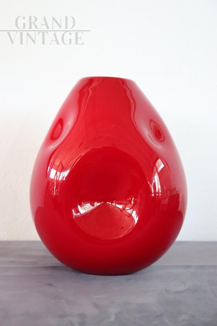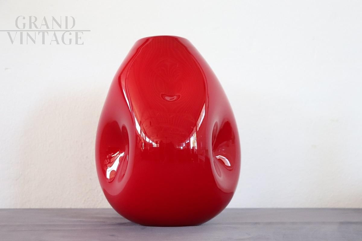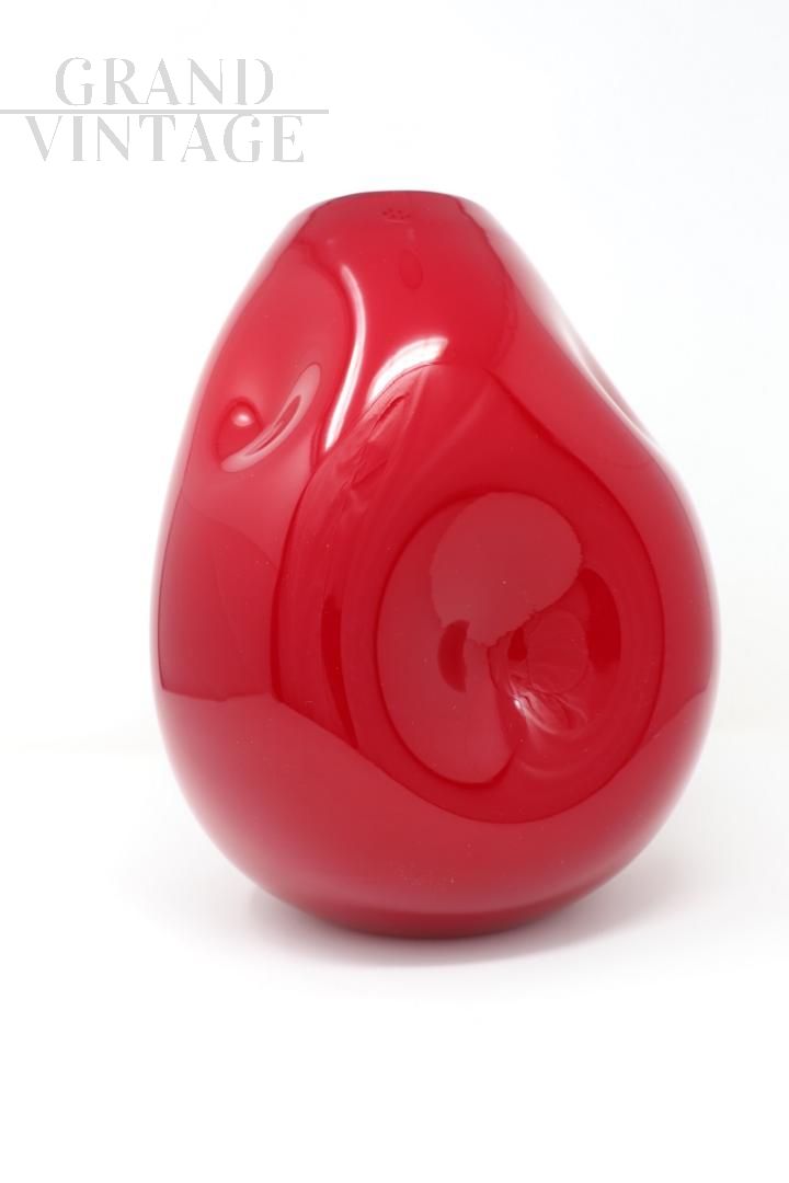 Vaso anni '70 in vetro di Murano incamiciato rosso, dalle forme moderne