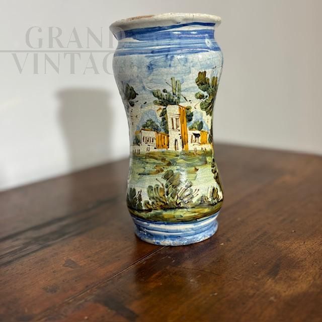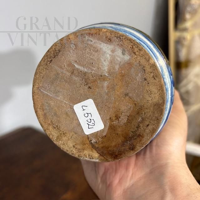 Vaso da farmacia antico in ceramica Albarello, Napoli XVIII secolo