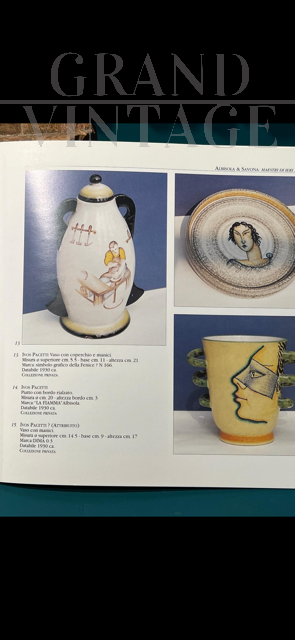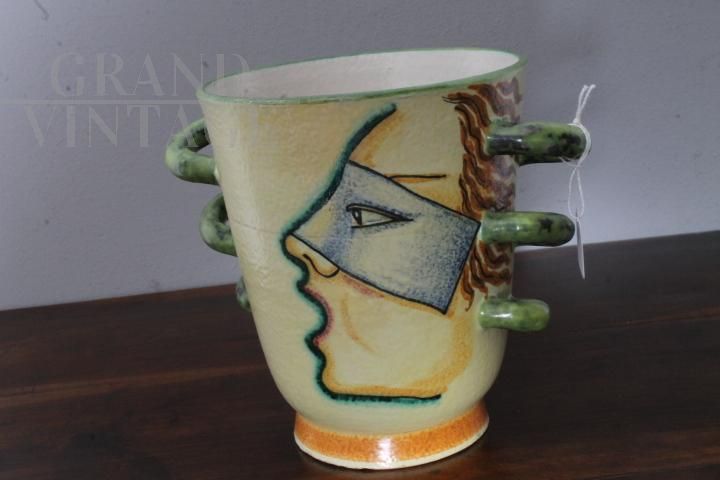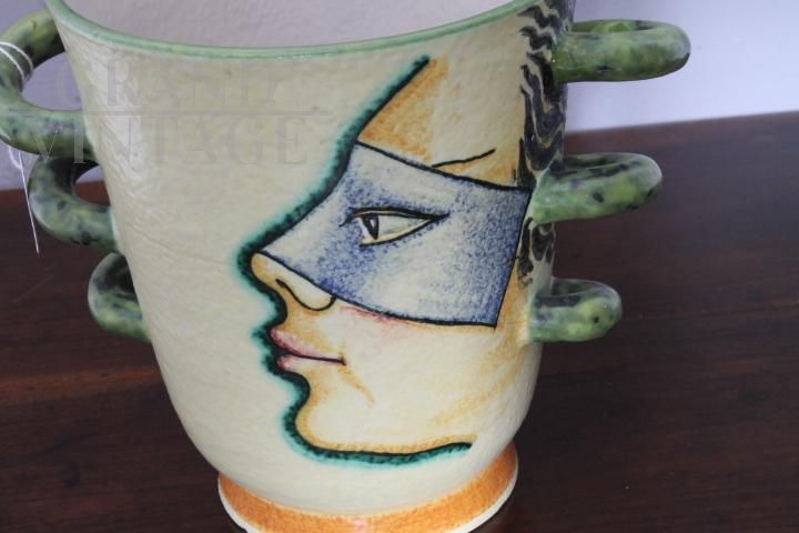 Magnifico vaso futurista realizzato da Ivos Pacetti per Dima in ceramica maiolica di Albisola, dipinto a mano con doppio volto, Italia anni '30. il vaso è molto importante, in perfetto stato di conservazione, ed è stato pubblicato anche nel catalogo, come da foto.