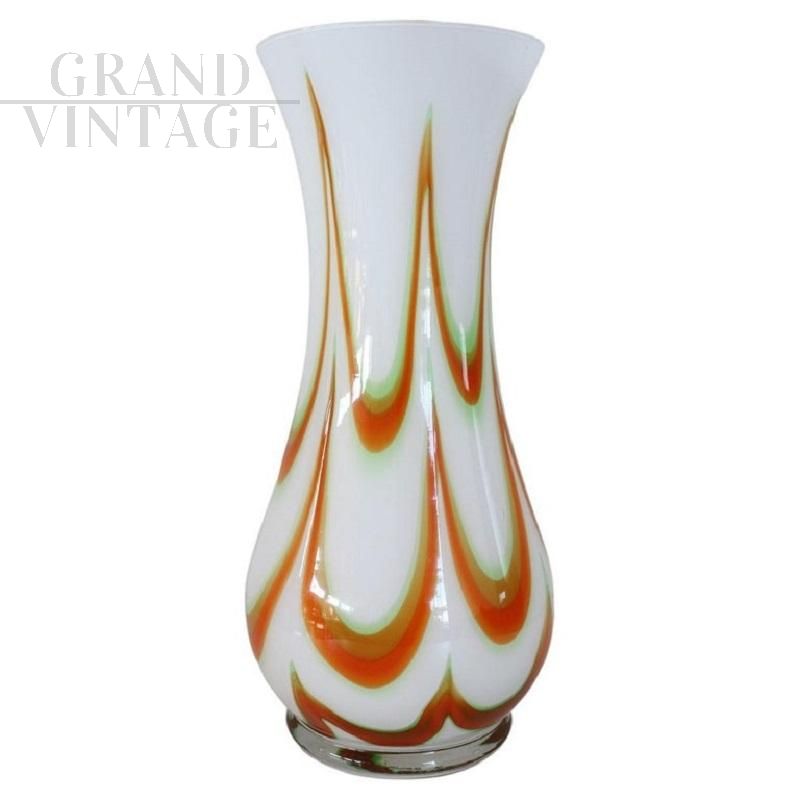 Vaso in vetro artistico di Murano bianco e arancione, anni '60