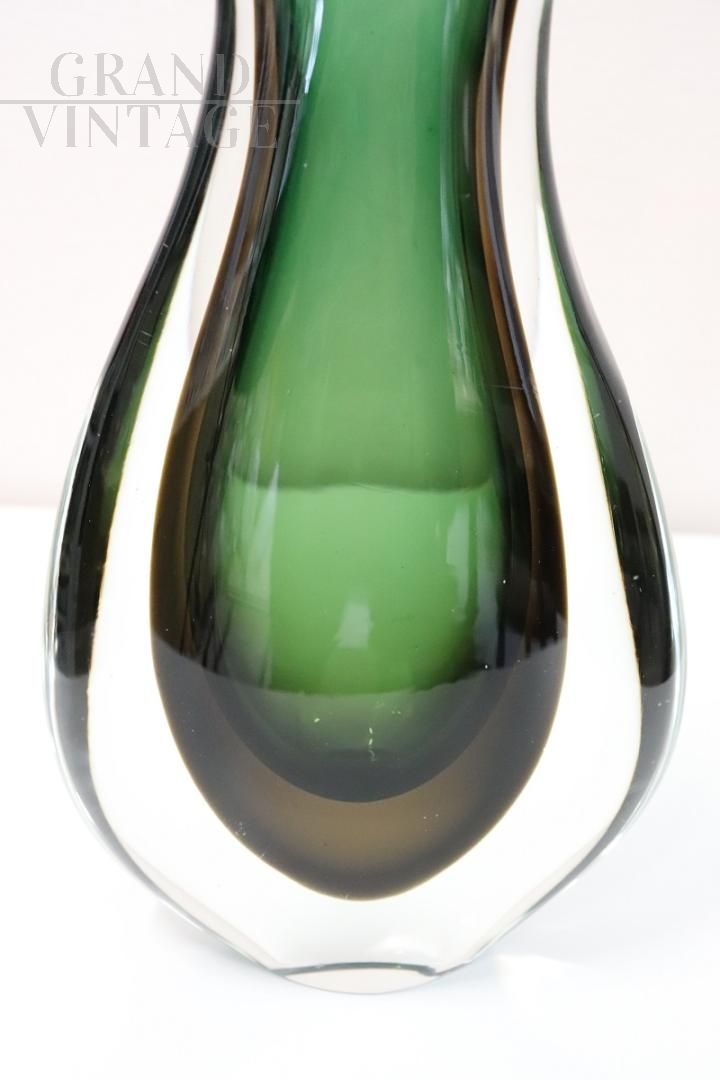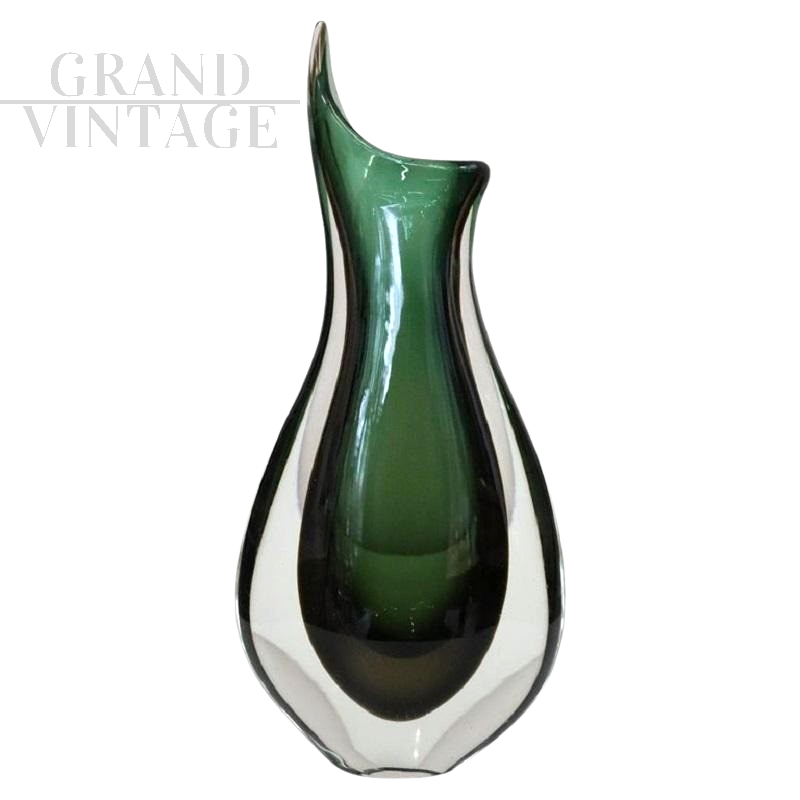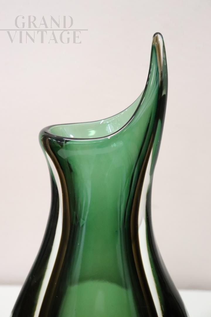Vaso in vetro di Murano sommerso verde, Flavio Poli per Seguso, anni '60