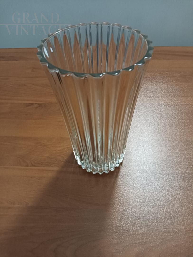 Vaso in vetro scanalato di Frantisek Visner per Rudolfava Hut Glassworks