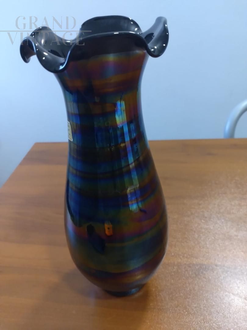 Vaso vintage in vetro di Murano con effetto olografico