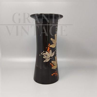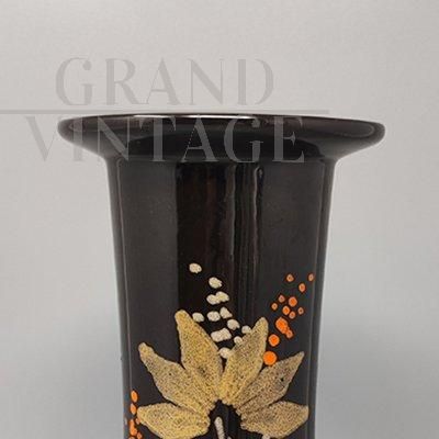 Vaso vintage in ceramica marrone dipinta a mano, Italia anni '70
