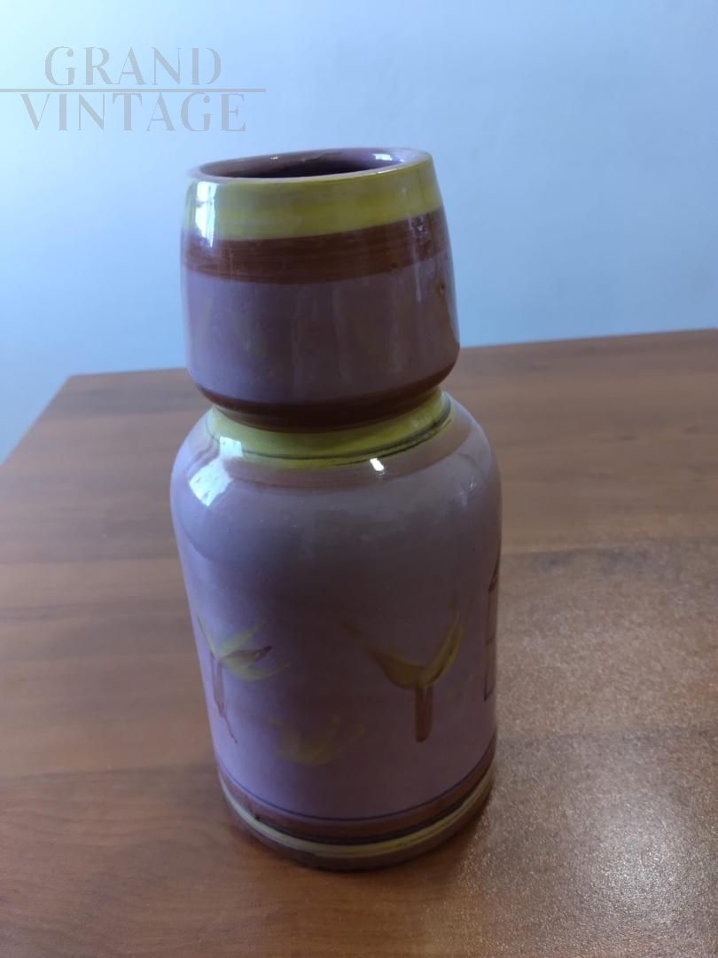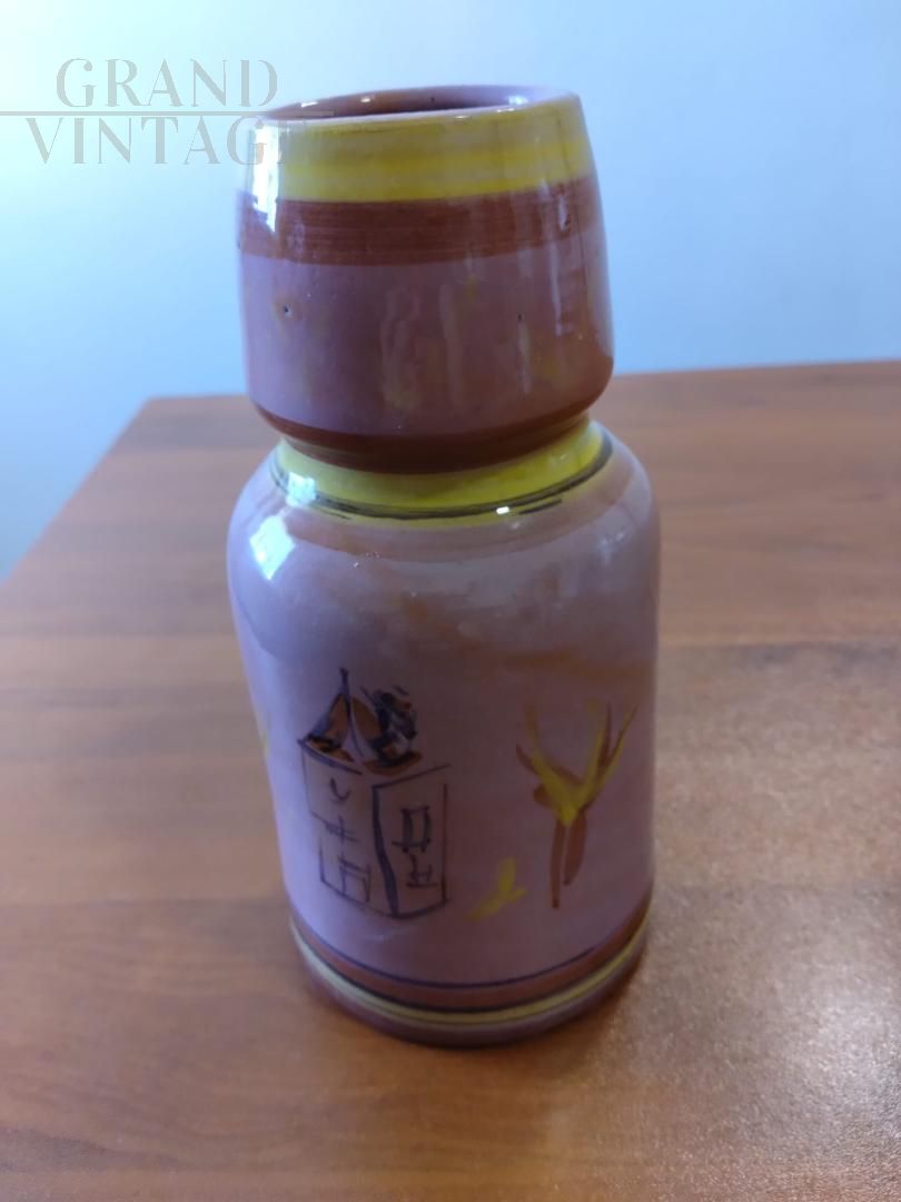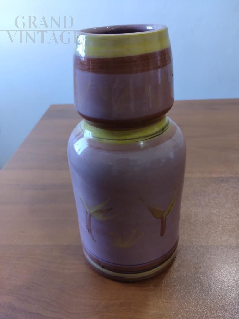 Vaso vintage in terracotta dipinta e smaltata