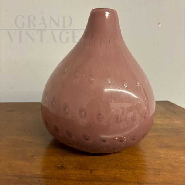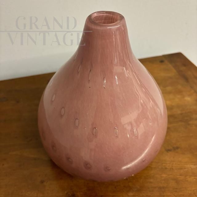 Vaso vintage in vetro di Murano rosa con bolle in sospensione, della metà del XX secolo. In pefetto stato.