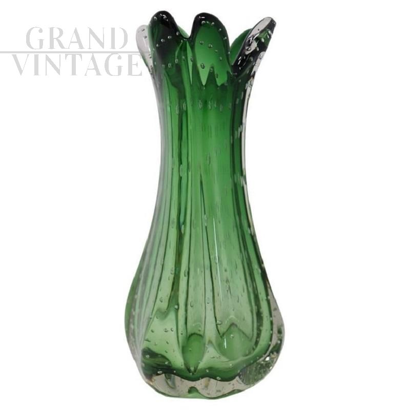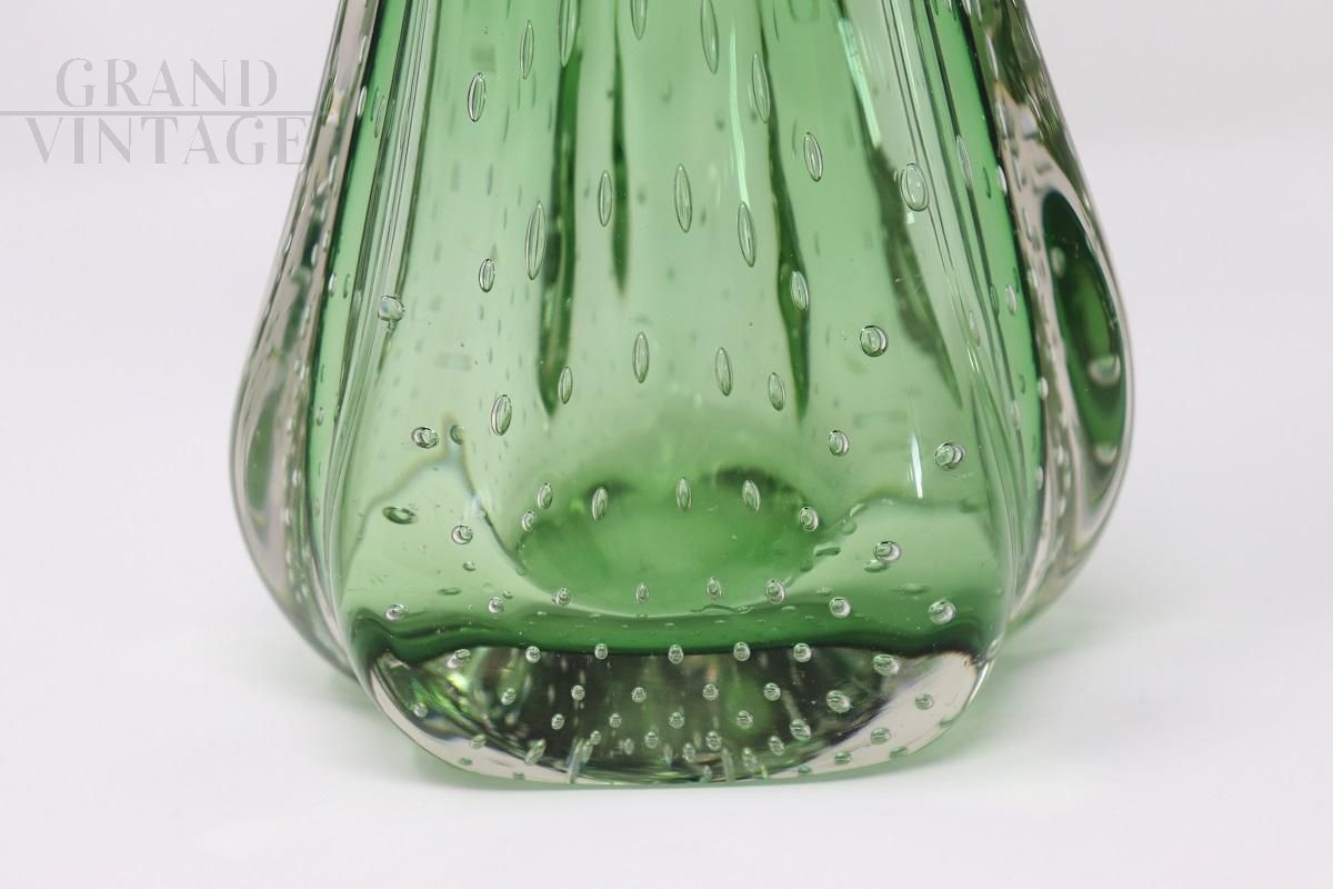 Vaso vintage in vetro di Murano verde con bollicine, anni '60