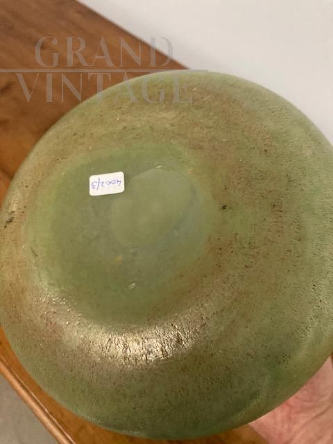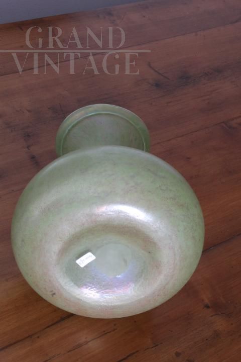 Vaso vintage in vetro di Murano verde con riflessi a lustro