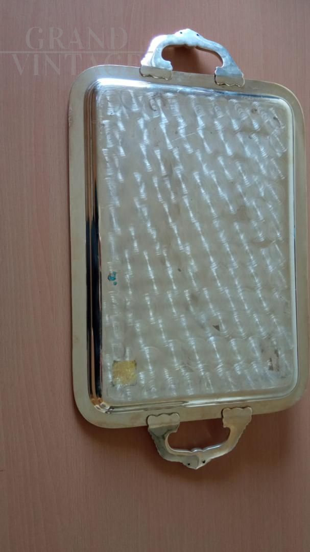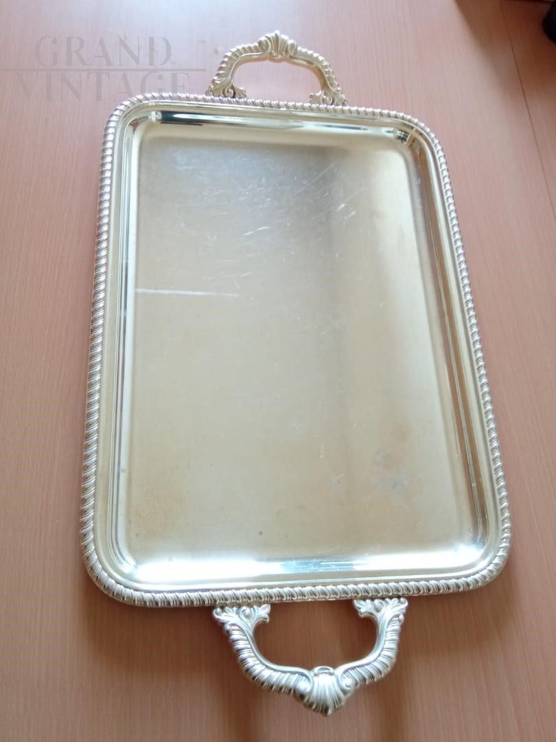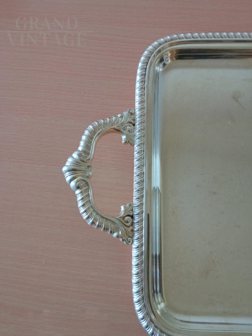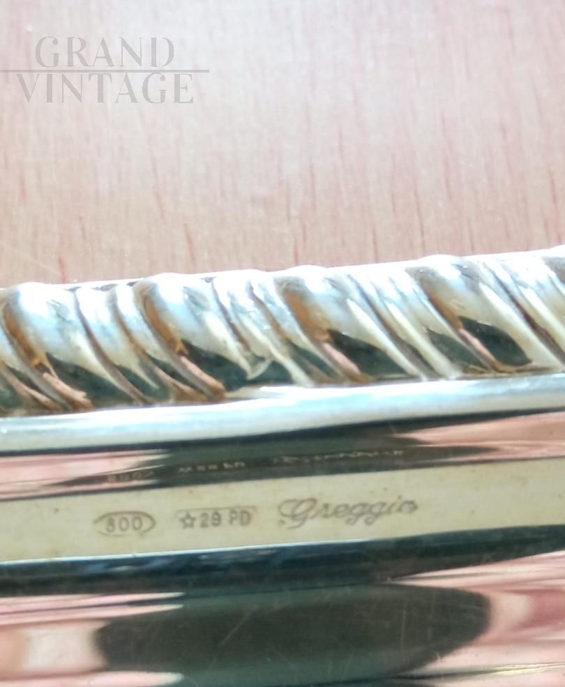 Vassoio vintage in argento 800 dell'Argenteria Greggio, finemente lavorato con manici e perimetro a torchon.