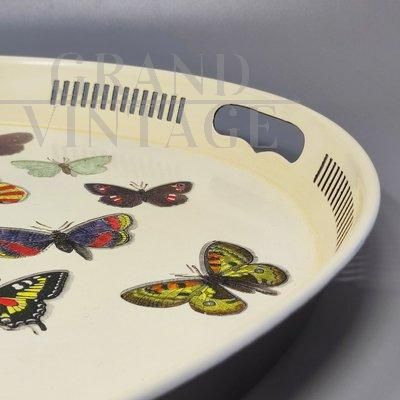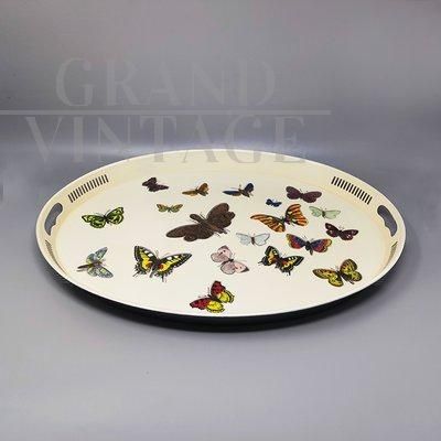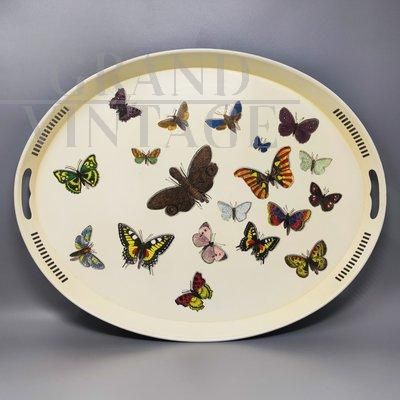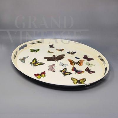 Vassoio ovale in metallo di Piero Fornasetti con farfalle, Italia anni '70
