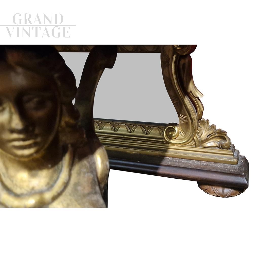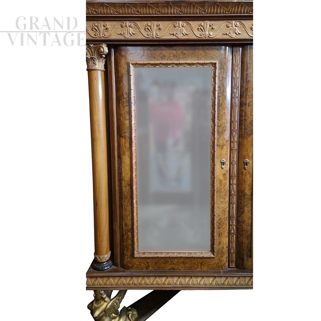 Vetrina in stile antico Impero in radica con colonne e cariatidi