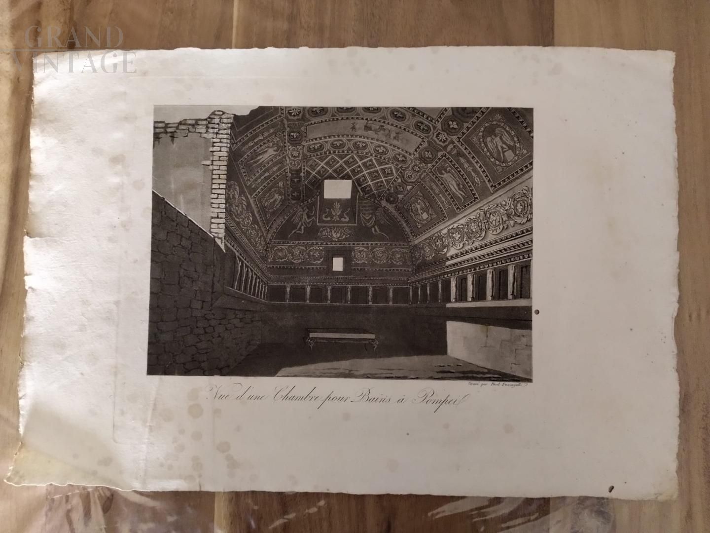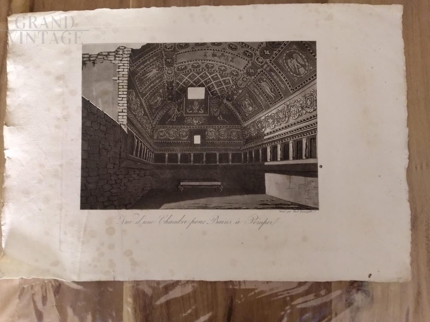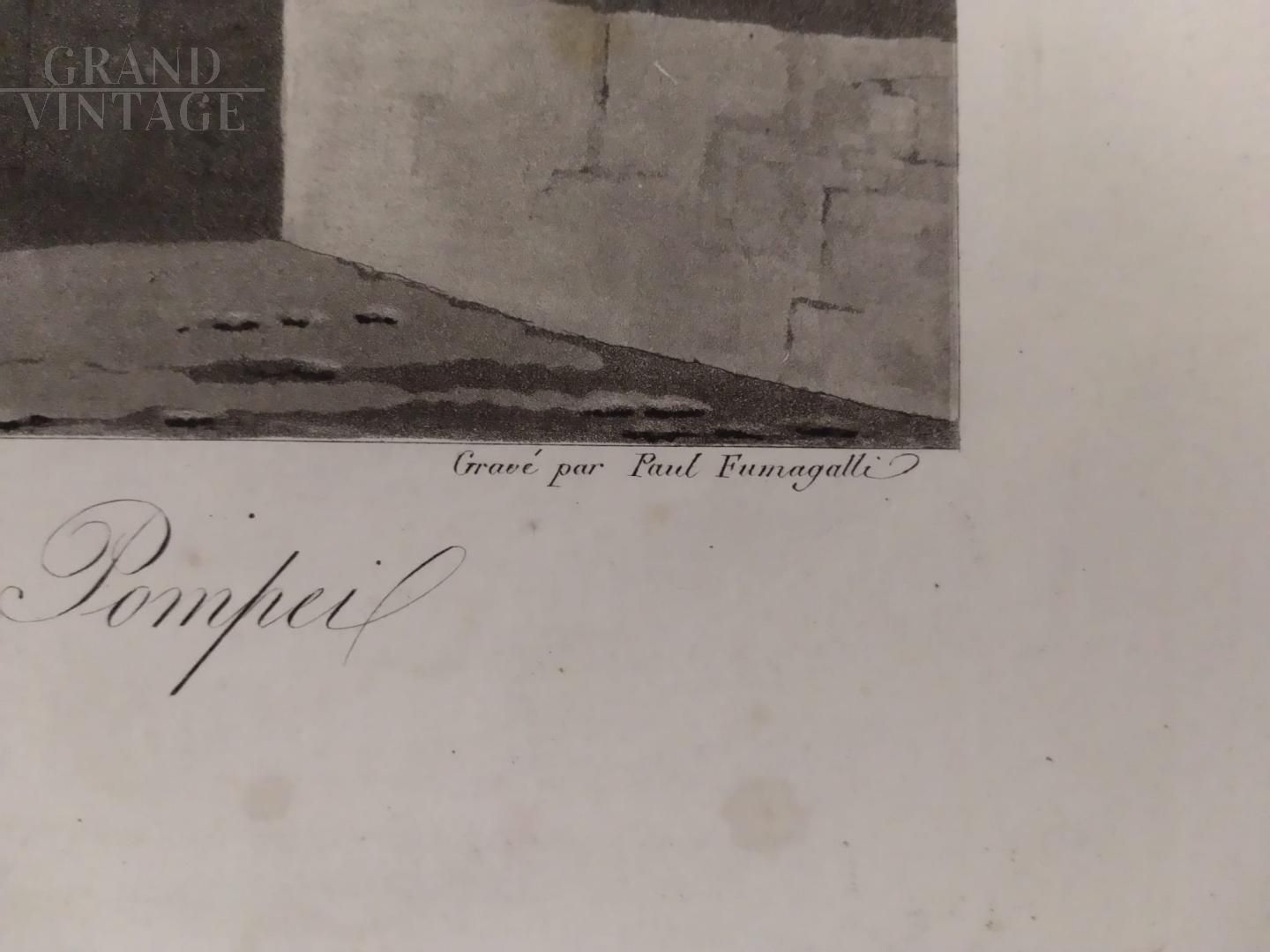 Vue d'un chambre pour Bains à Pompeil - Stampa antica di Paul Fumagalli dei primi anni dell'800 raffigurante una stanza da bagno negli scavi di Pompei. Paul Fumagalli è un artista nato nel 1797 e morto nel 1873. La stampa misura cm 48 x 32 e non ha la cornice. Trattasi di un oggetto di antiquariato proposto nelle condizioni in cui è stato trovato, presenta i segni del tempo e potrebbe necessitare di interventi di restauro.