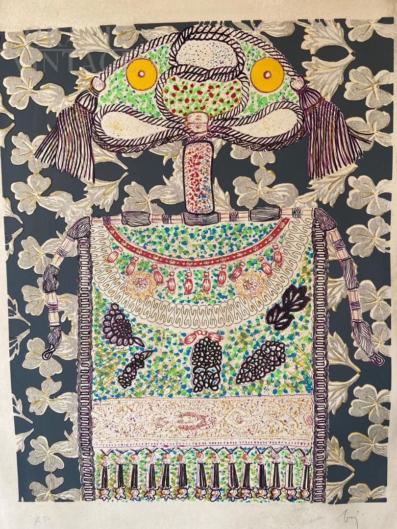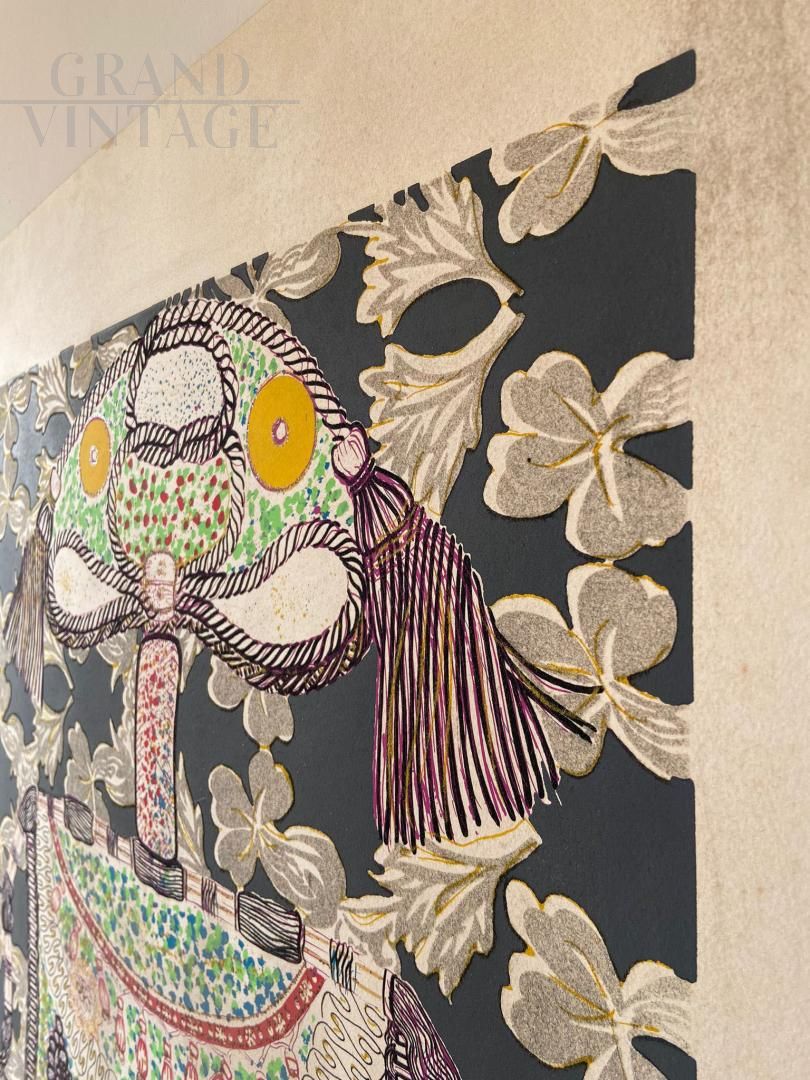 Xilografia dal titolo Lady Virginia Woolf firmata da Enrico Baj, Italia 1973