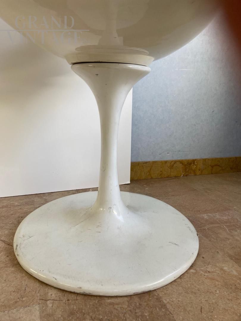 Set di 4 sedie modello Tulip anni '60 in vetroresina e base in alluminio pressofuso, con seduta imbottita.