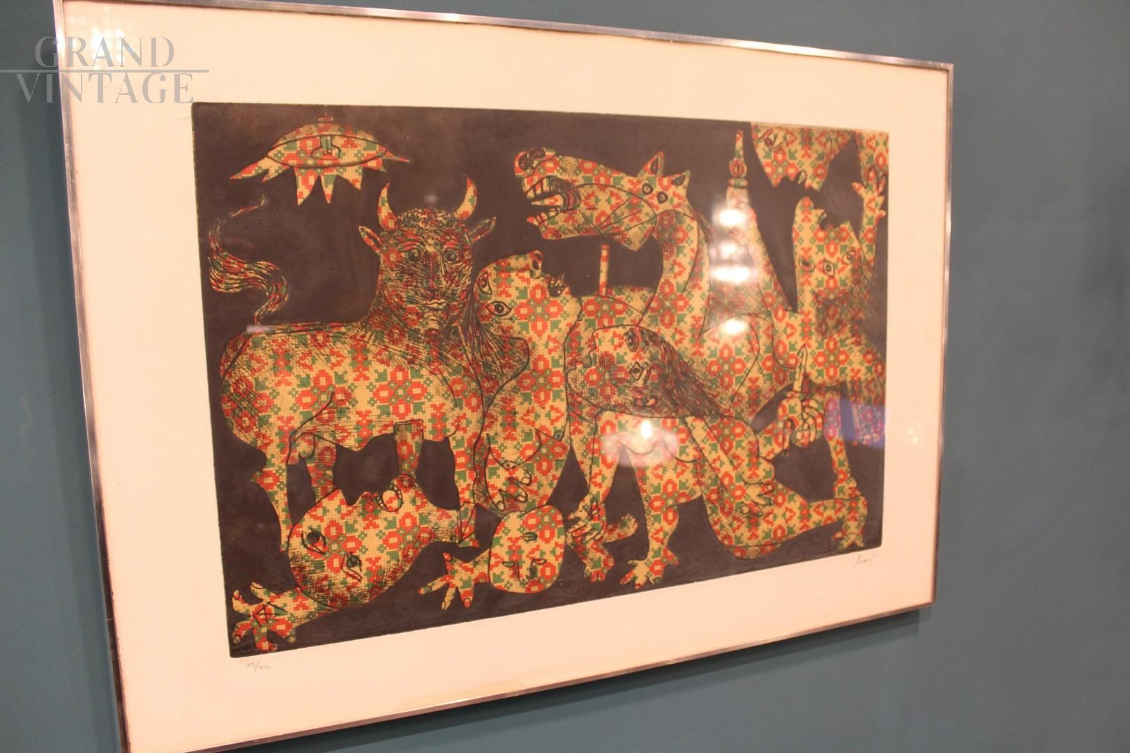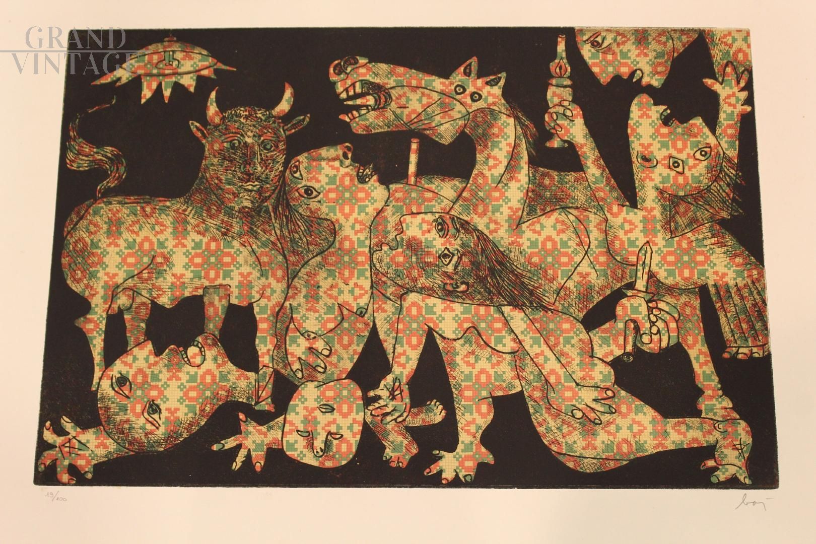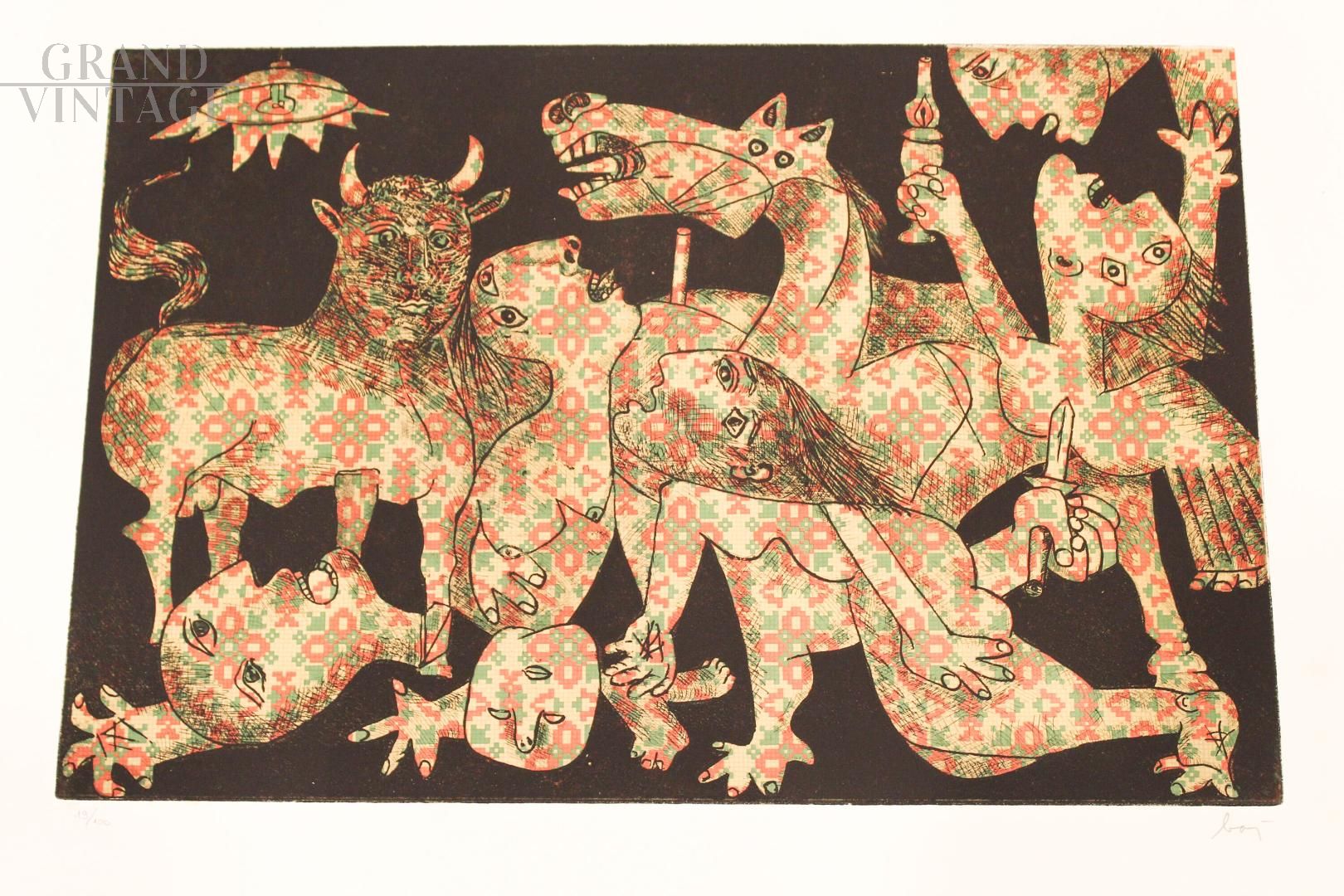 Acquatinta acquaforte Guernica di Enrico Baj, Italia 1960