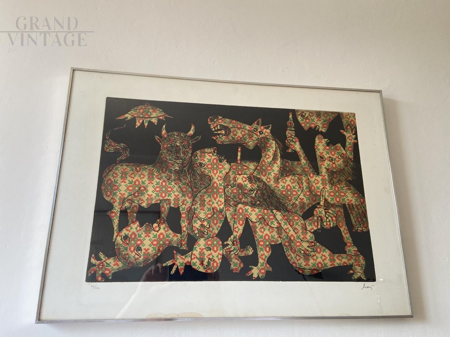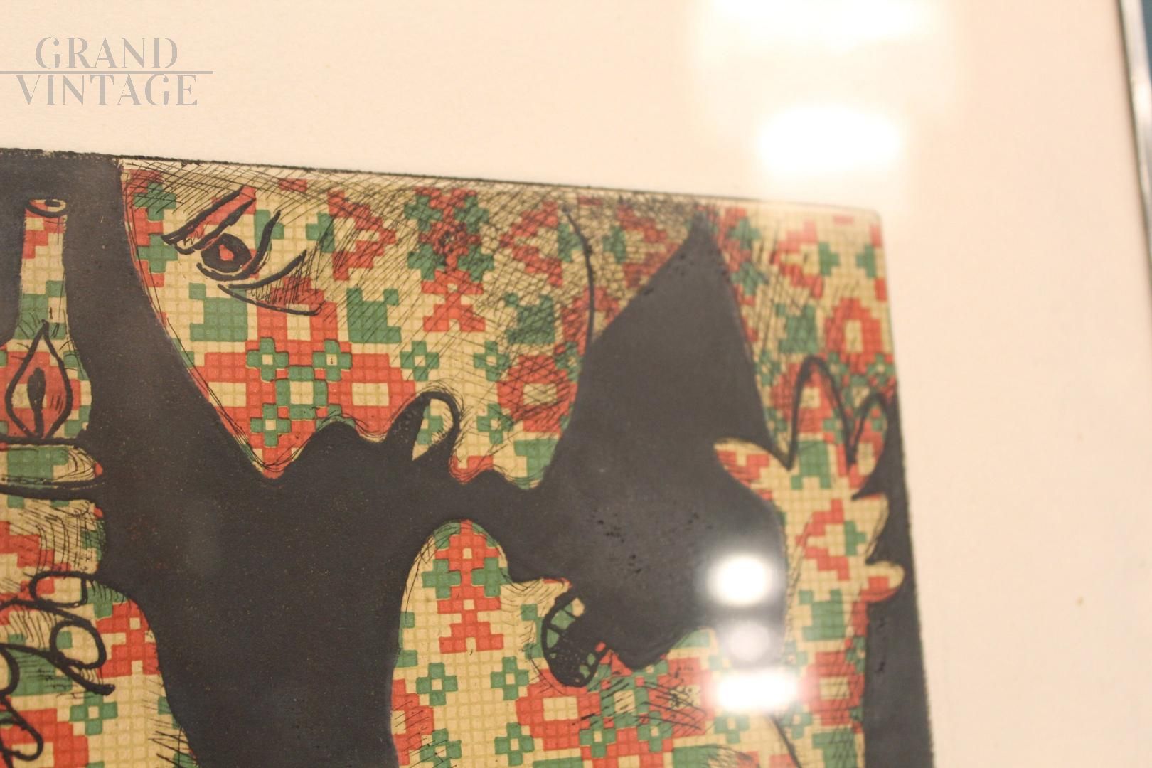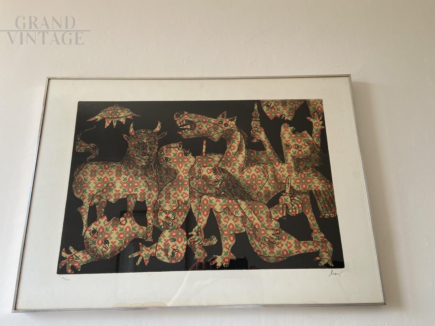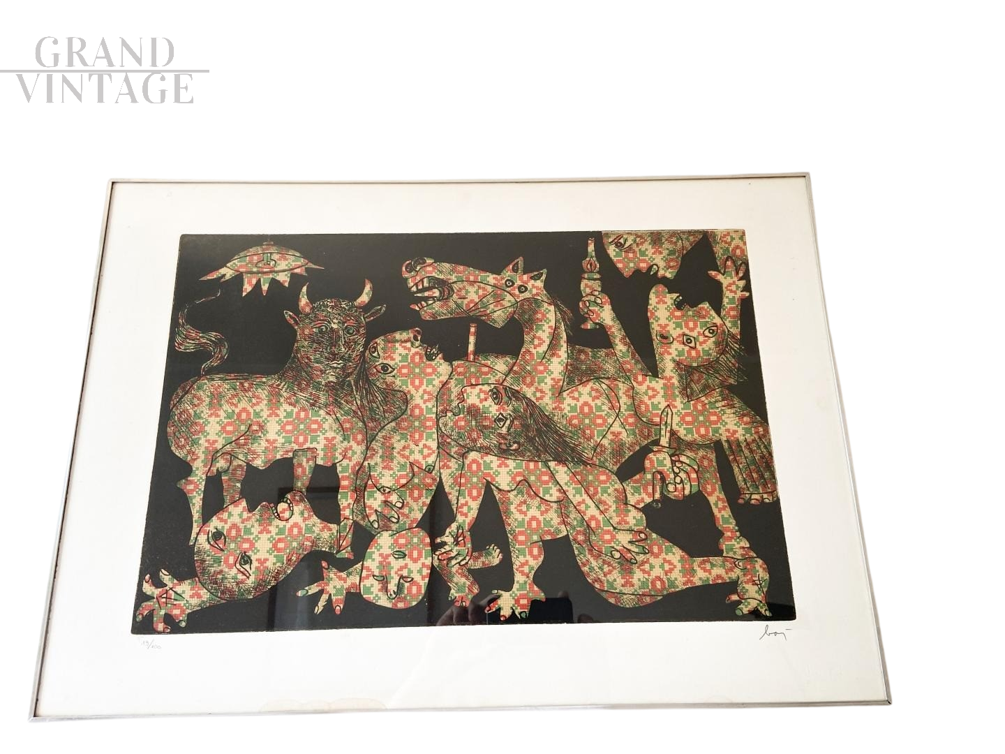 Acquatinta acquaforte Guernica di Enrico Baj, Italia 1960
