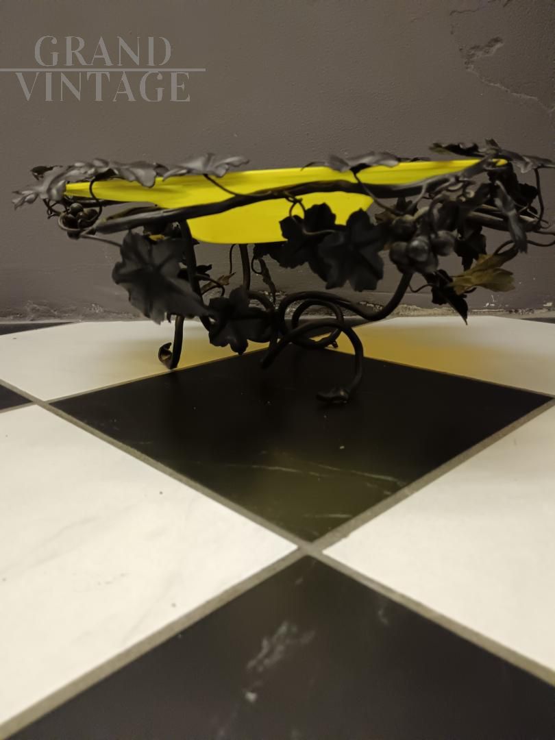 Alzatina centrotavola in ferro battuto e vetro di Murano giallo