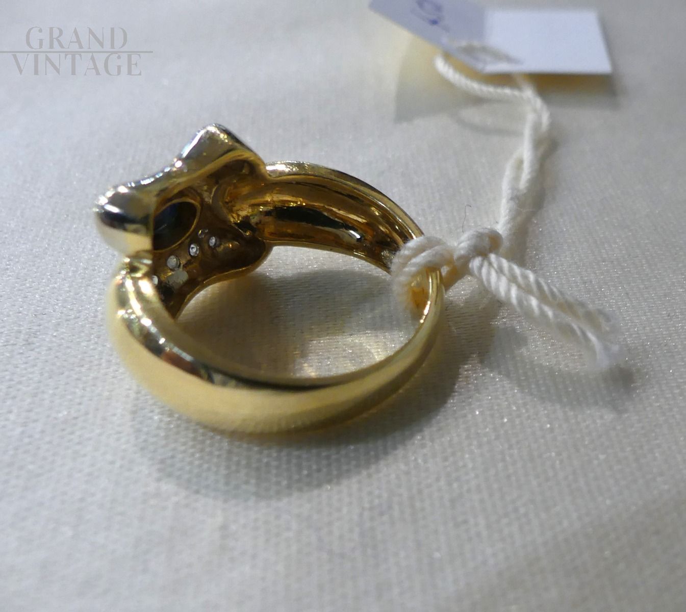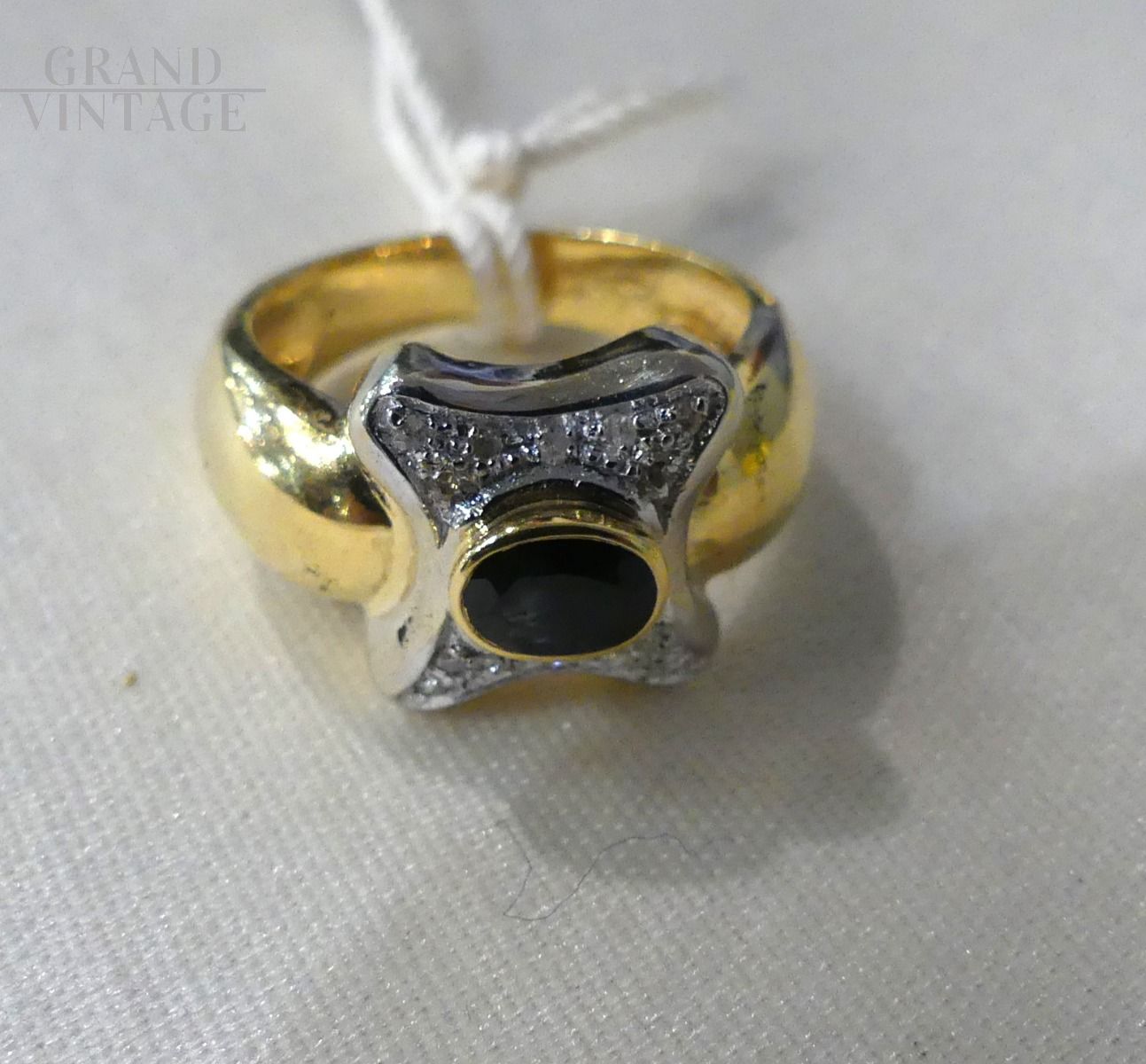 Anello anni '80 in oro con zaffiro e diamanti