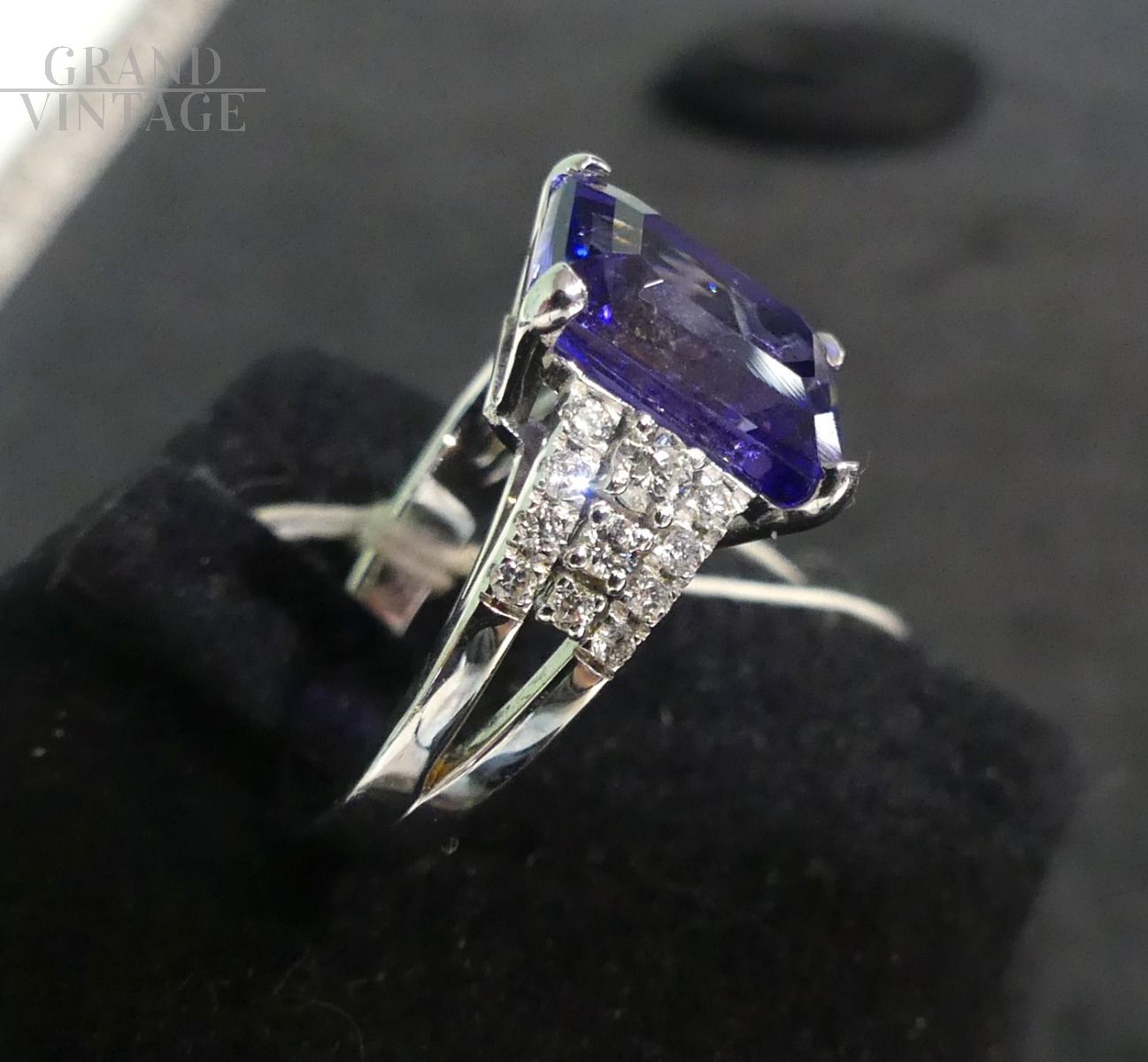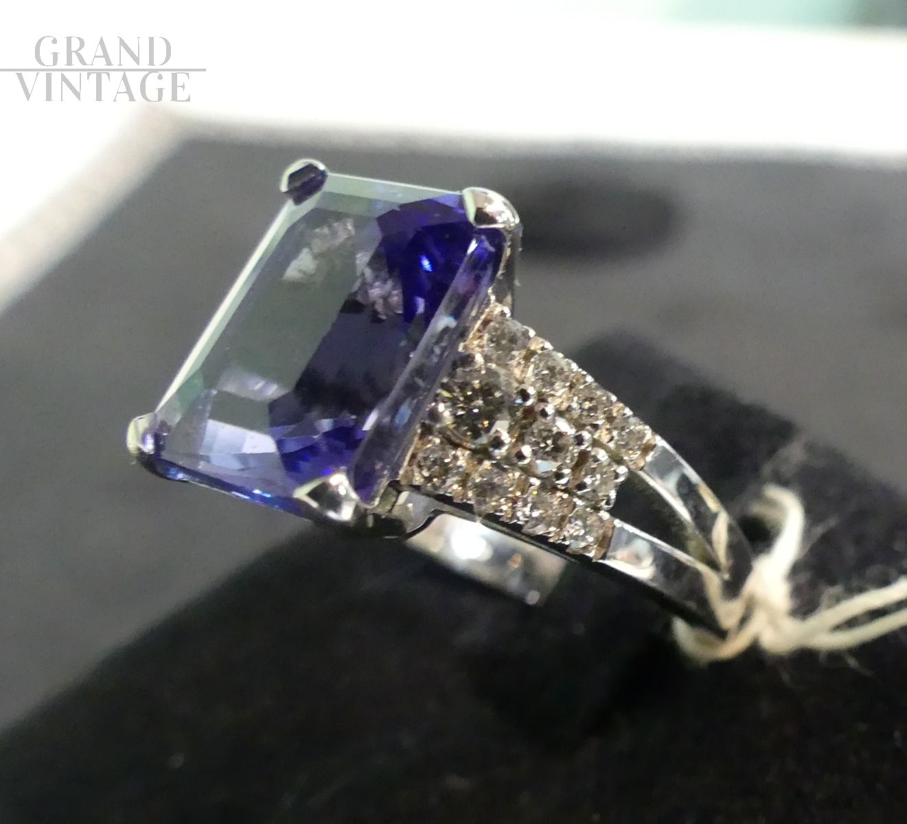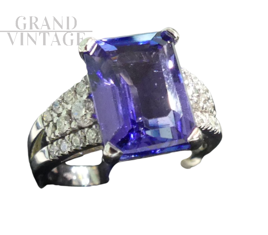 Anello in oro bianco 18 kt con grande tanzanite e diamanti taglio brillante.