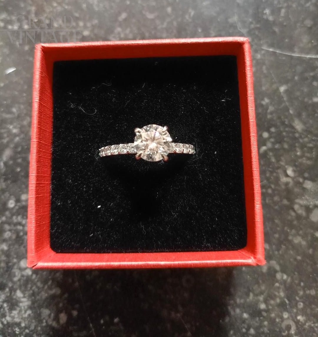 Anello con diamante solitario da 1,47 carati, il diamante è stato creato in laboratorio ed è corredato da Certificato di Autenticità come da foto.