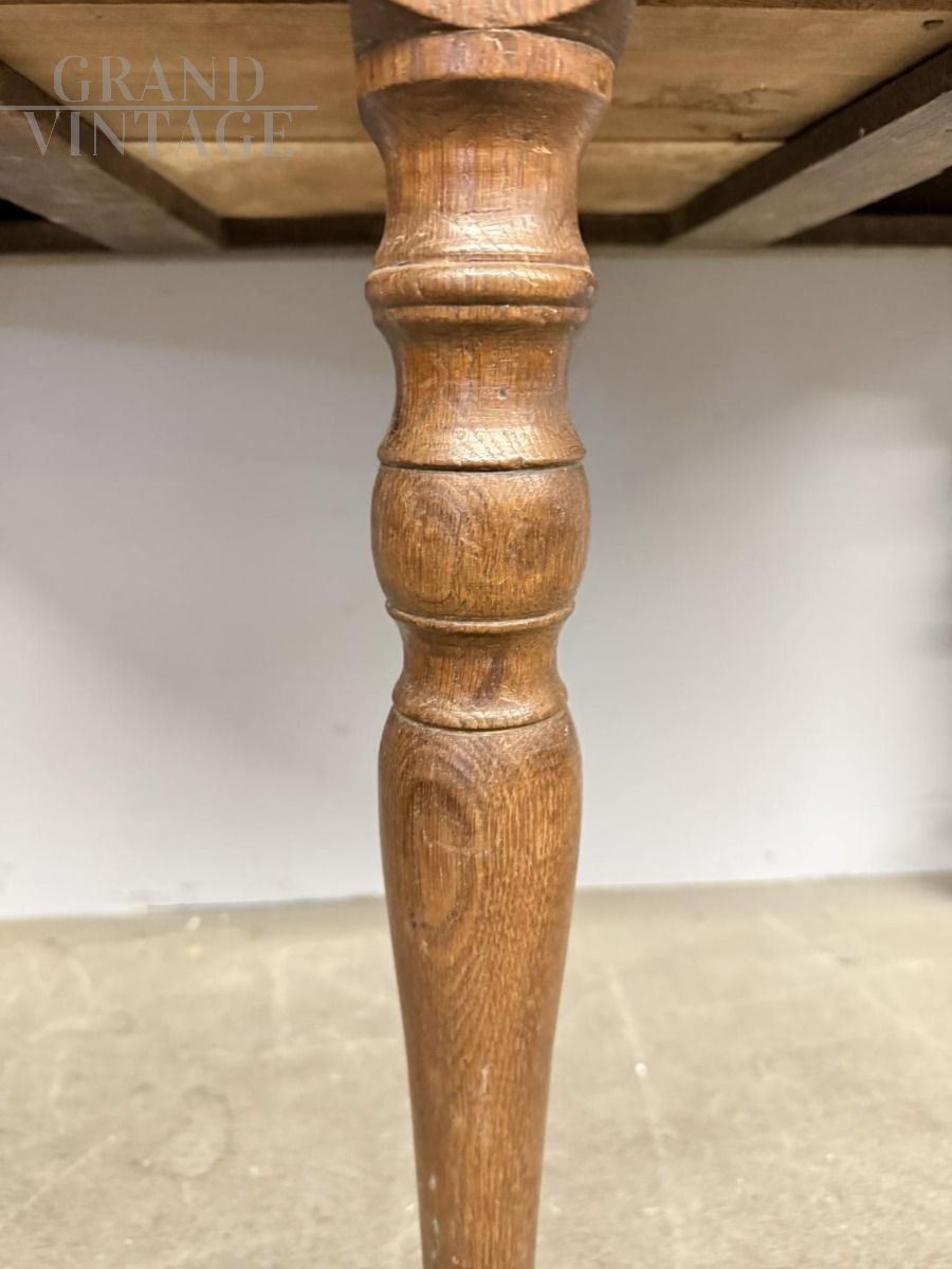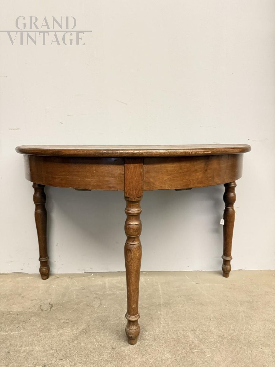Antica console a mezzaluna di epoca Luigi Filippo in legno di castagno, proveniente dall'Italia - Umbria di metà '800, 71 x 106 x 52 cm. Nel retro riporta un cassetto segreto!