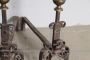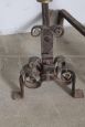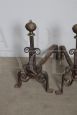 Antica coppia di alari da camino in ferro e ottone del XVIII secolo