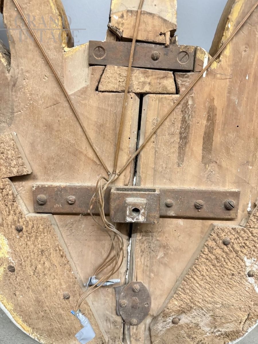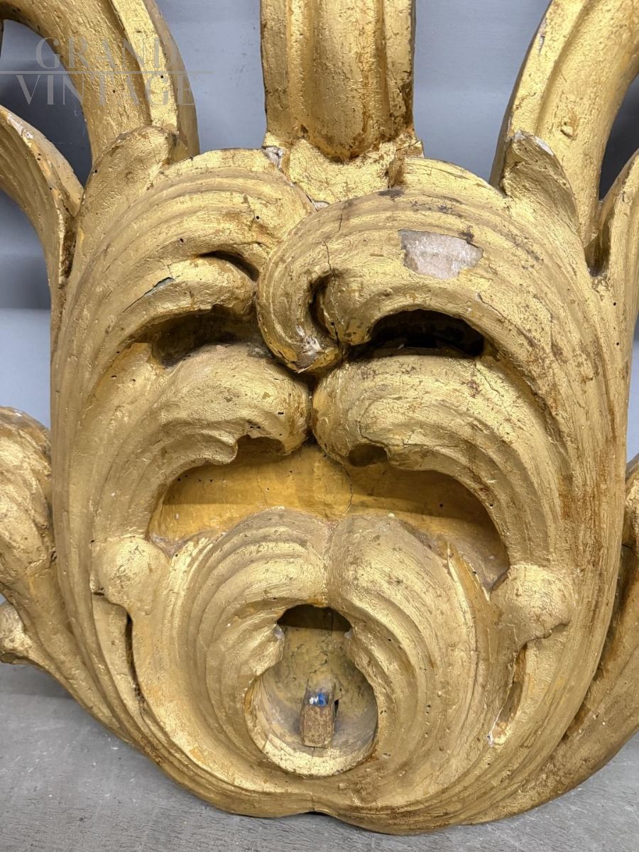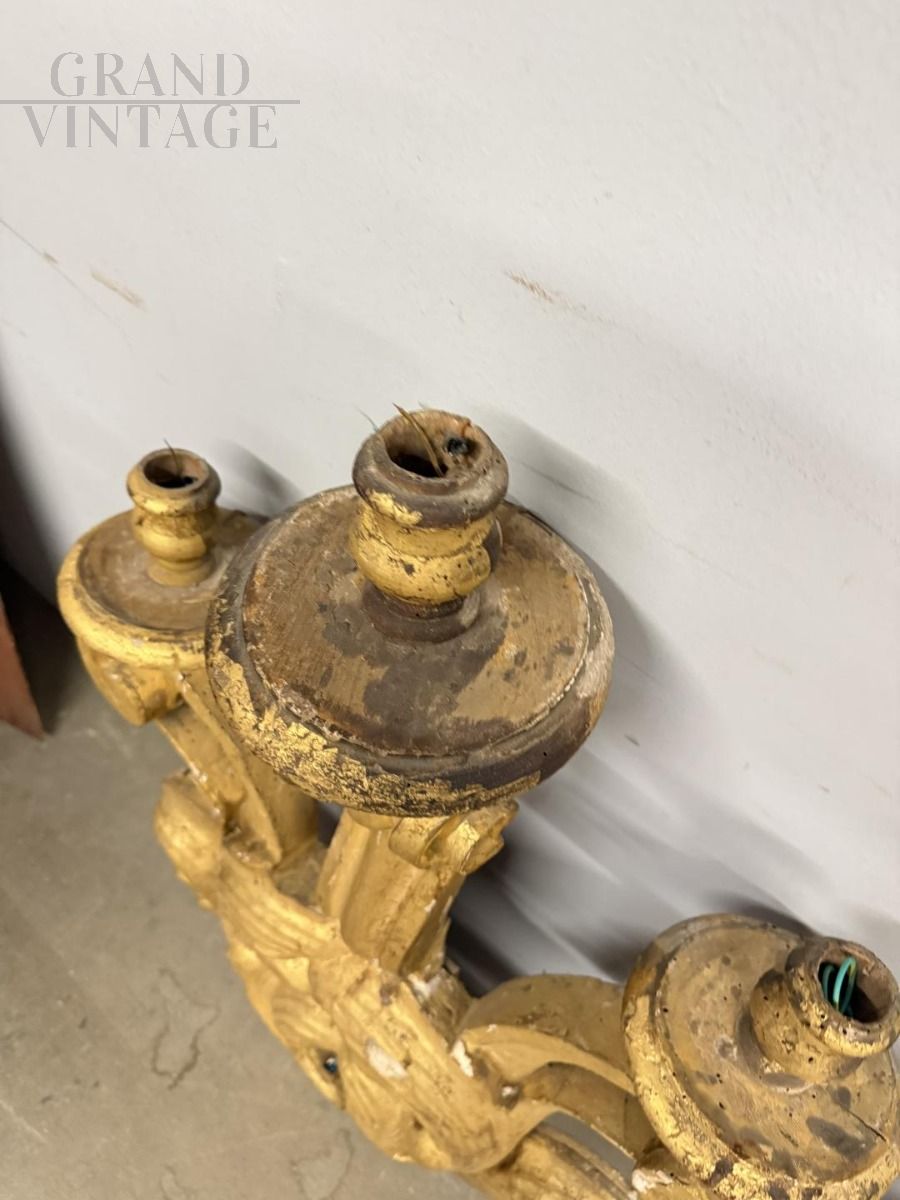 Antica coppia di grandi applique in legno dorato e intagliato, XIX secolo