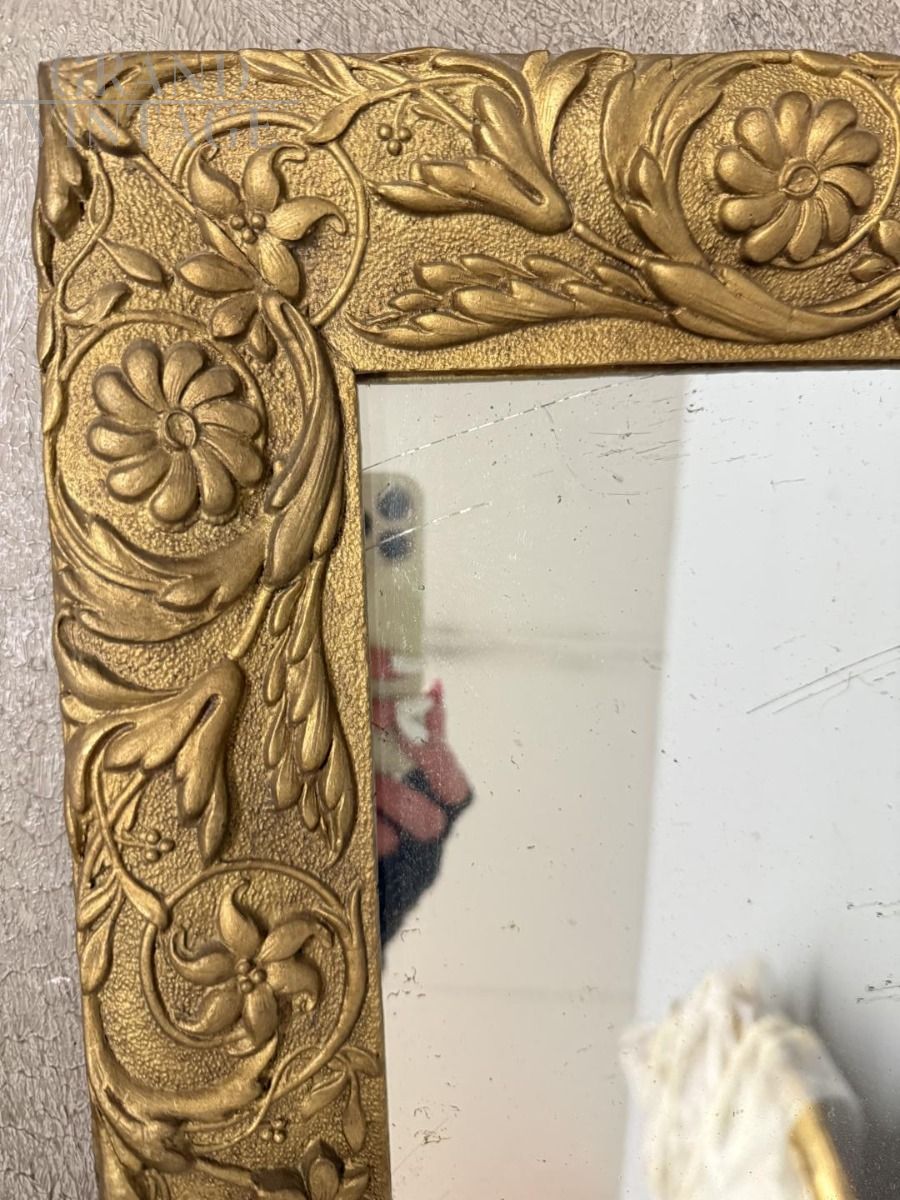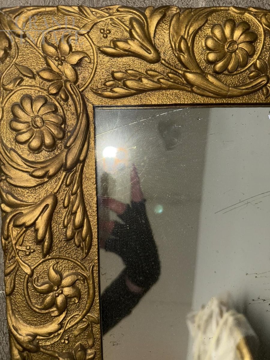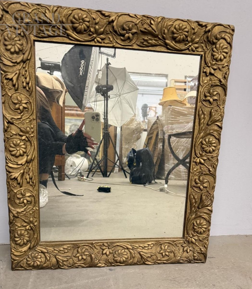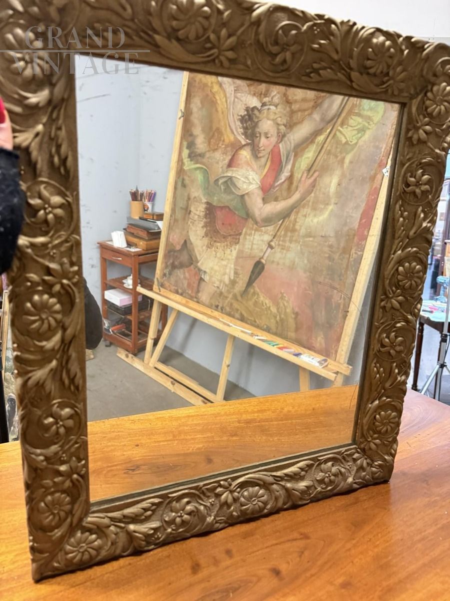 Antica specchiera dorata con intagli floreali, XIX secolo