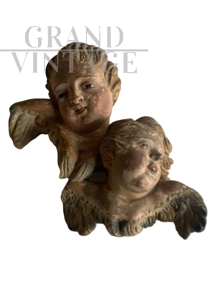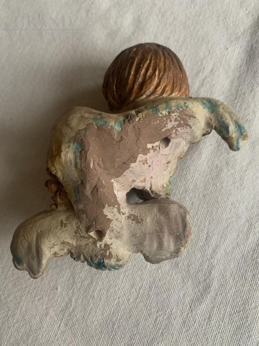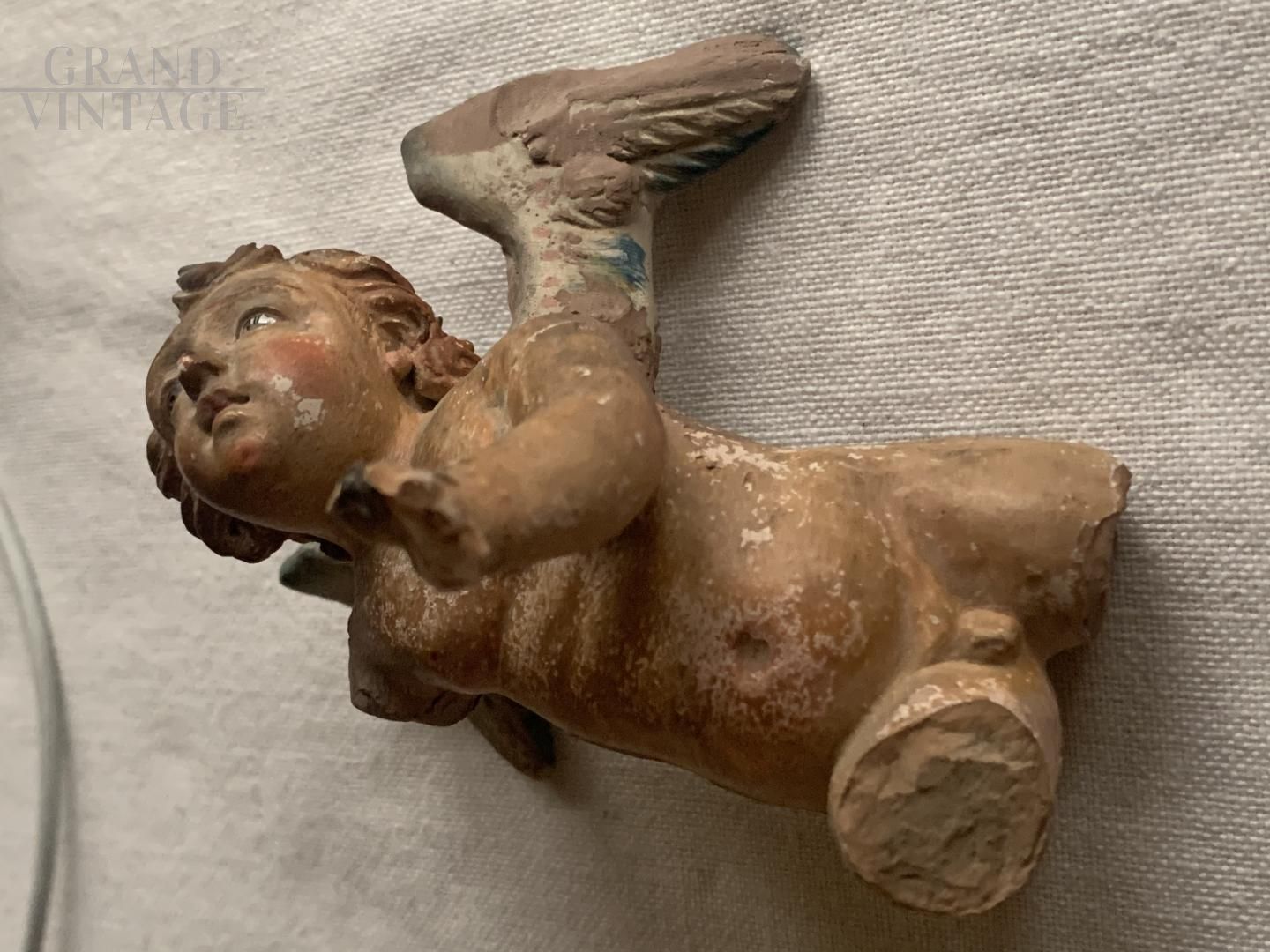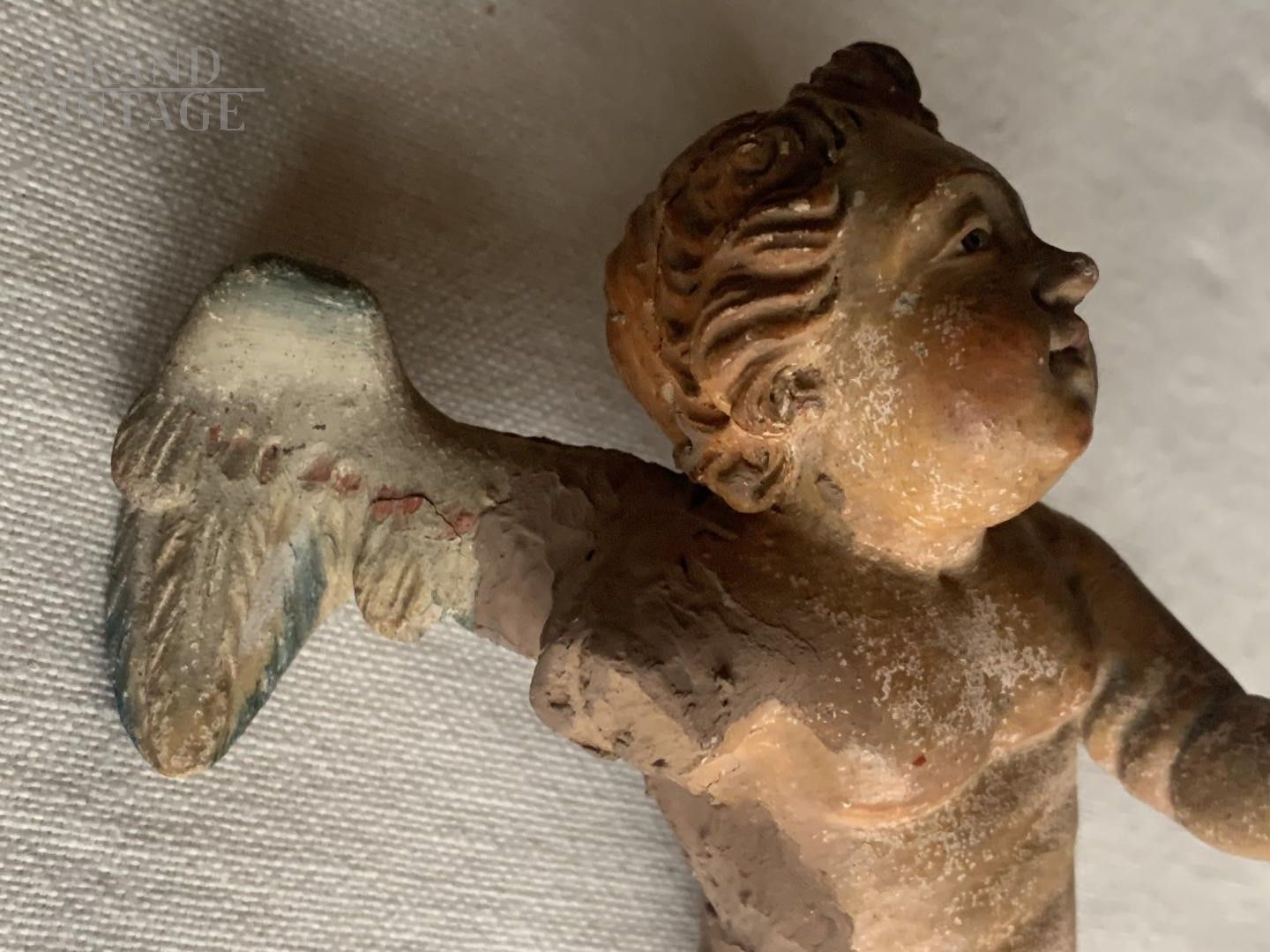 3 Figure di Amorini, Cherubini, Angeli in terracotta con gli occhi di vetro, in condizioni originali.