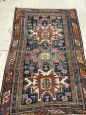 Tappeto Shirvan di antica manifattura, trama ordito e vello in lane policrome.