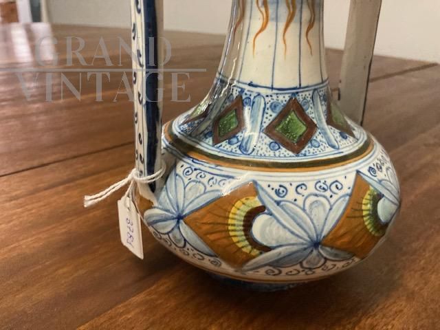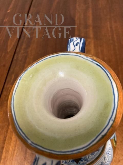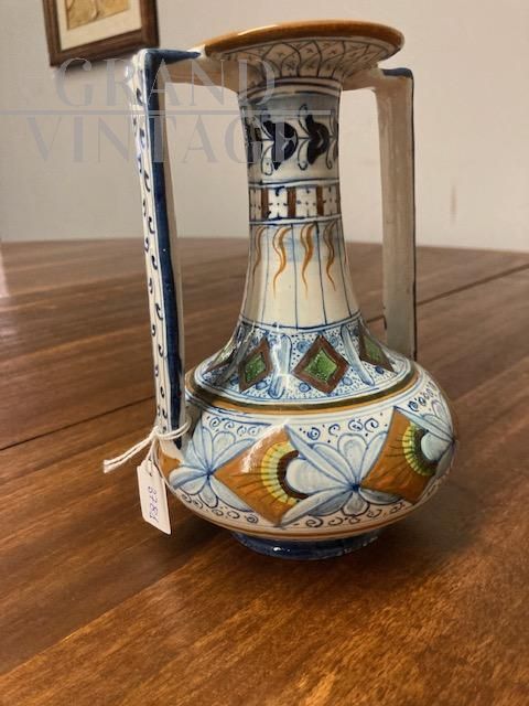Vasetto ad anfora di epoca Art Déco in maiolica dipinta e decorata policroma, realizzato dalla manifattura Cantagalli Firenze, 1930 – 1940. In buono stato di conservazione.