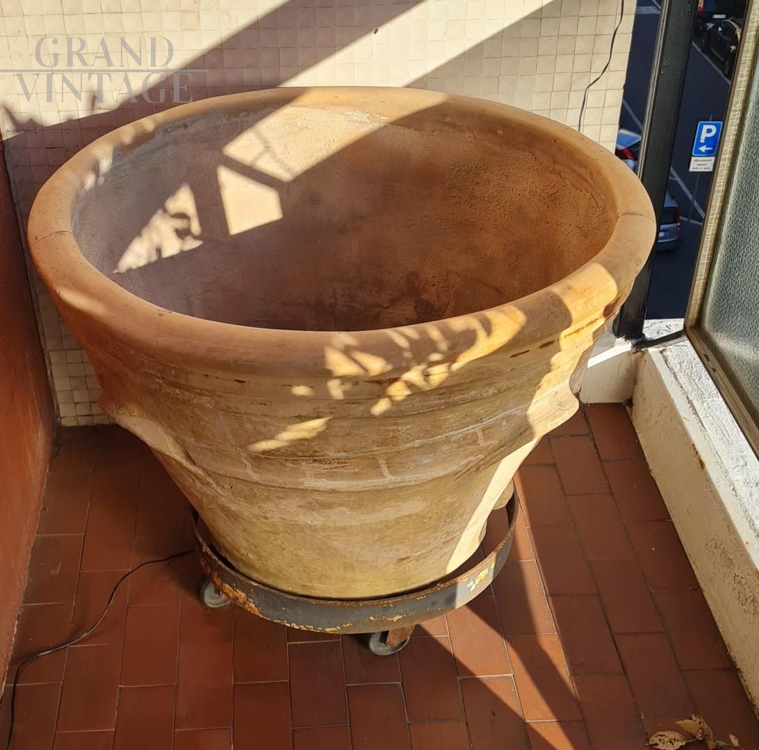 Vaso conico da limoni antico in cotto, 68 cm di diametro e 55 di altezza.