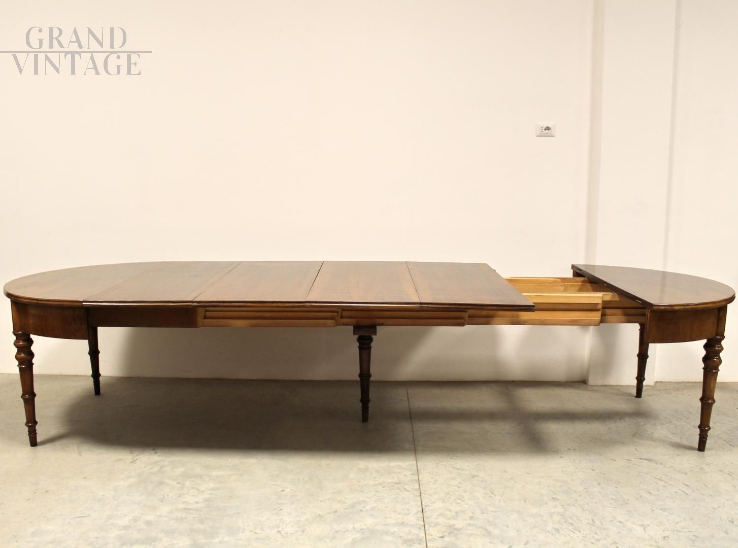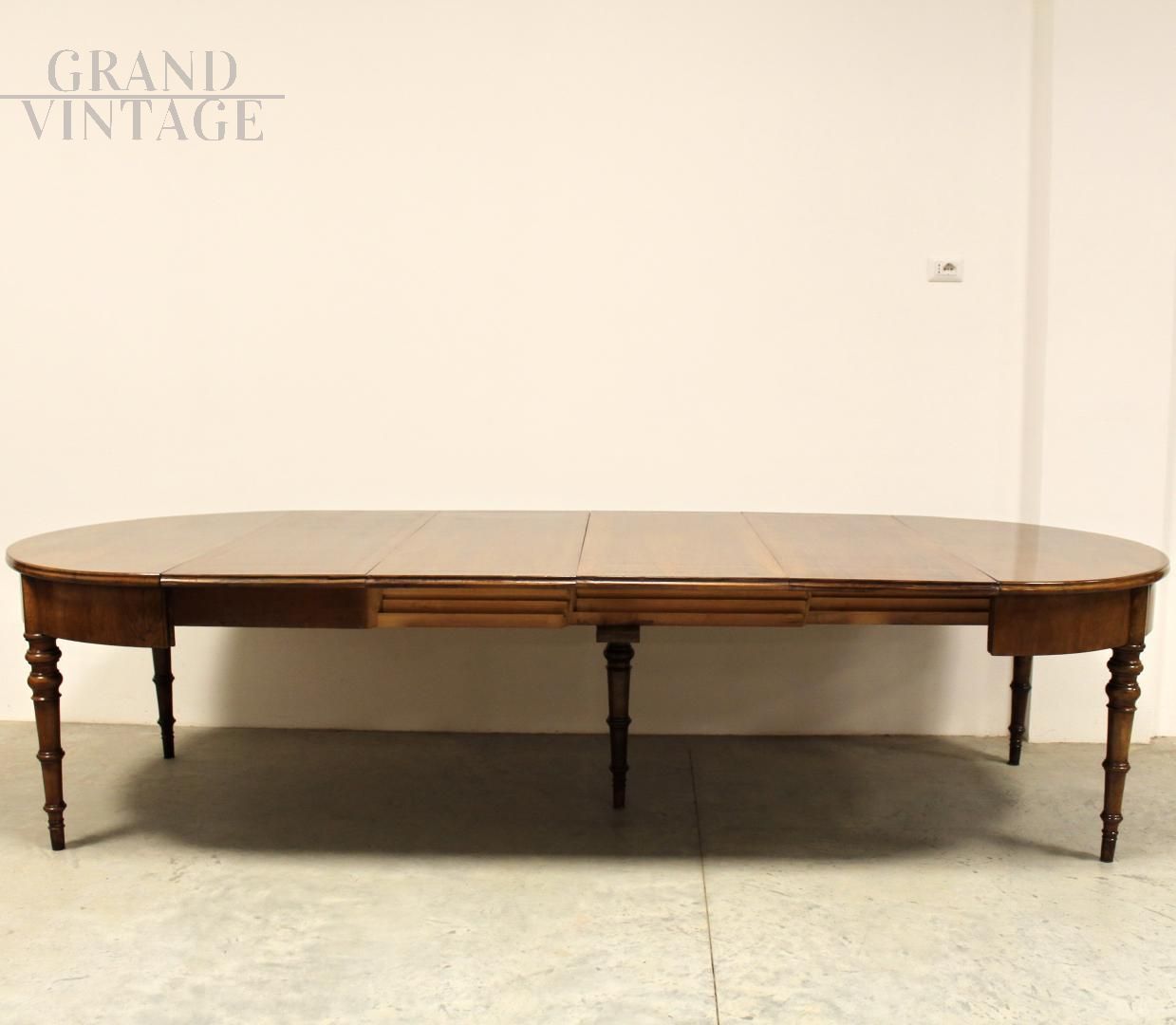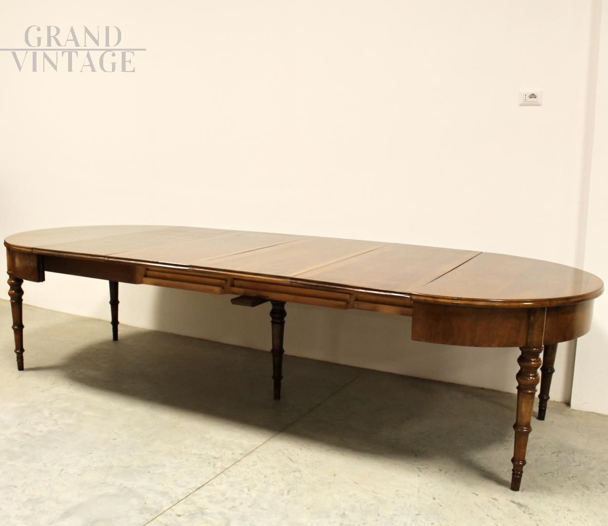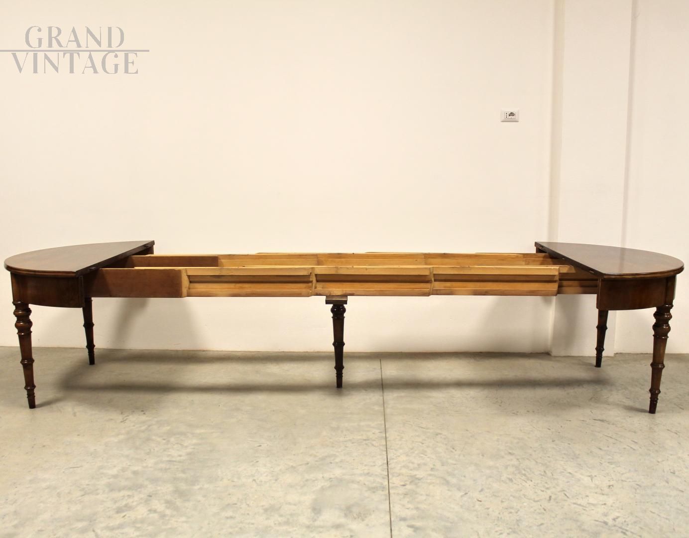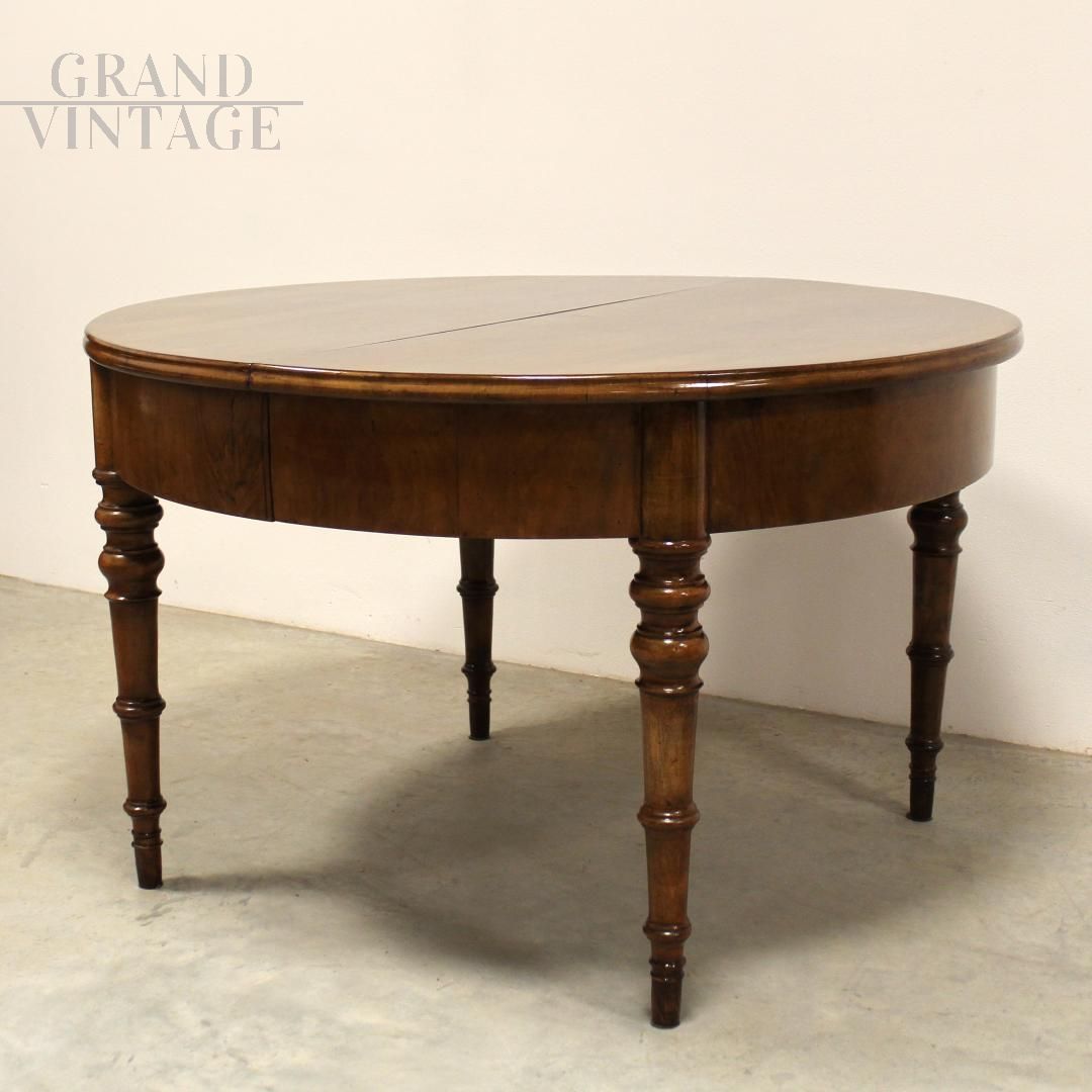 Antique extendable walnut table from the Louis Philippe period, Italy 19th century