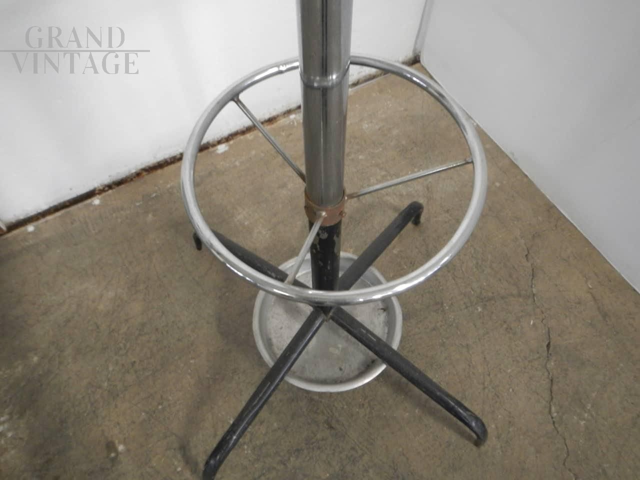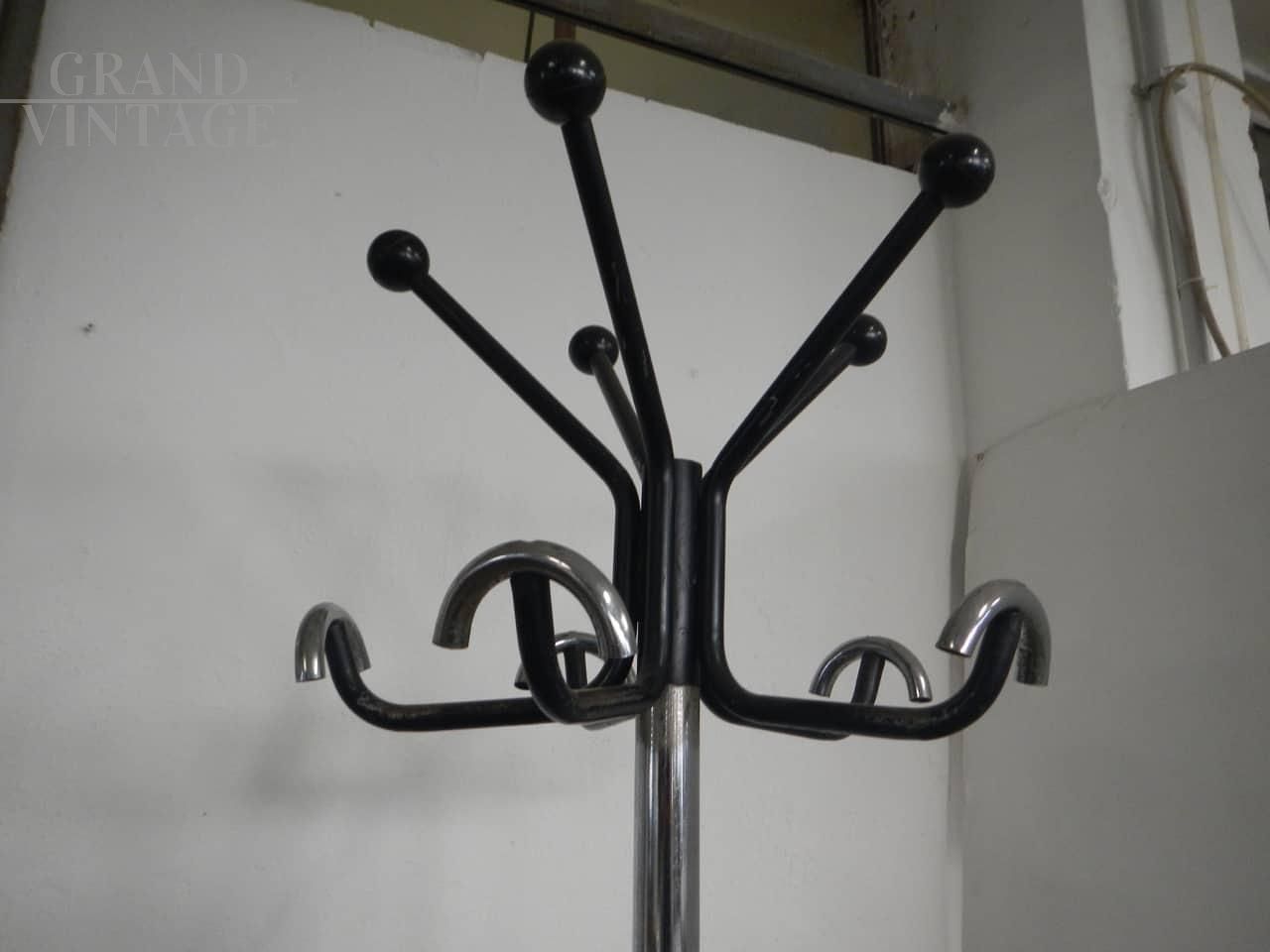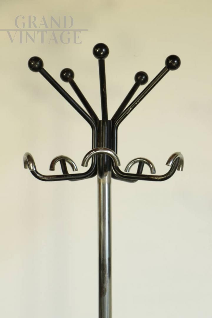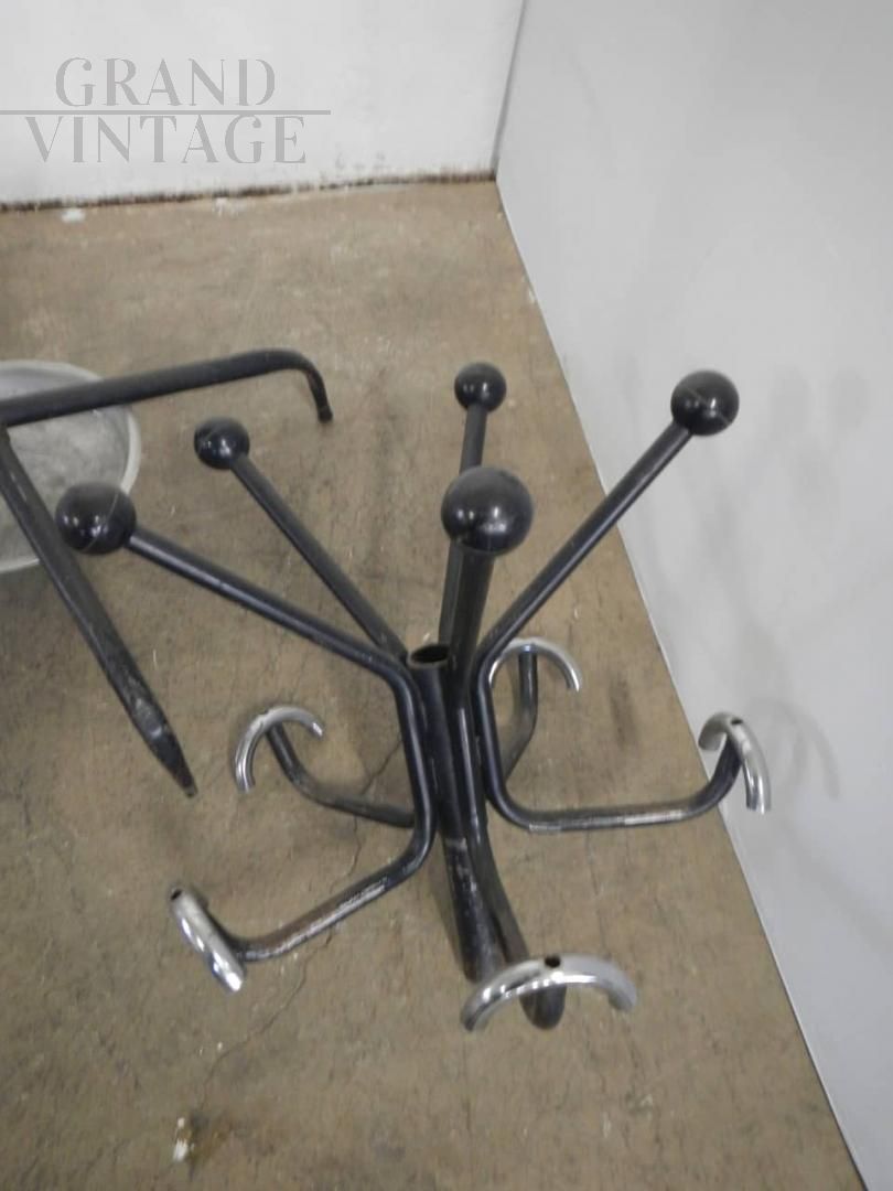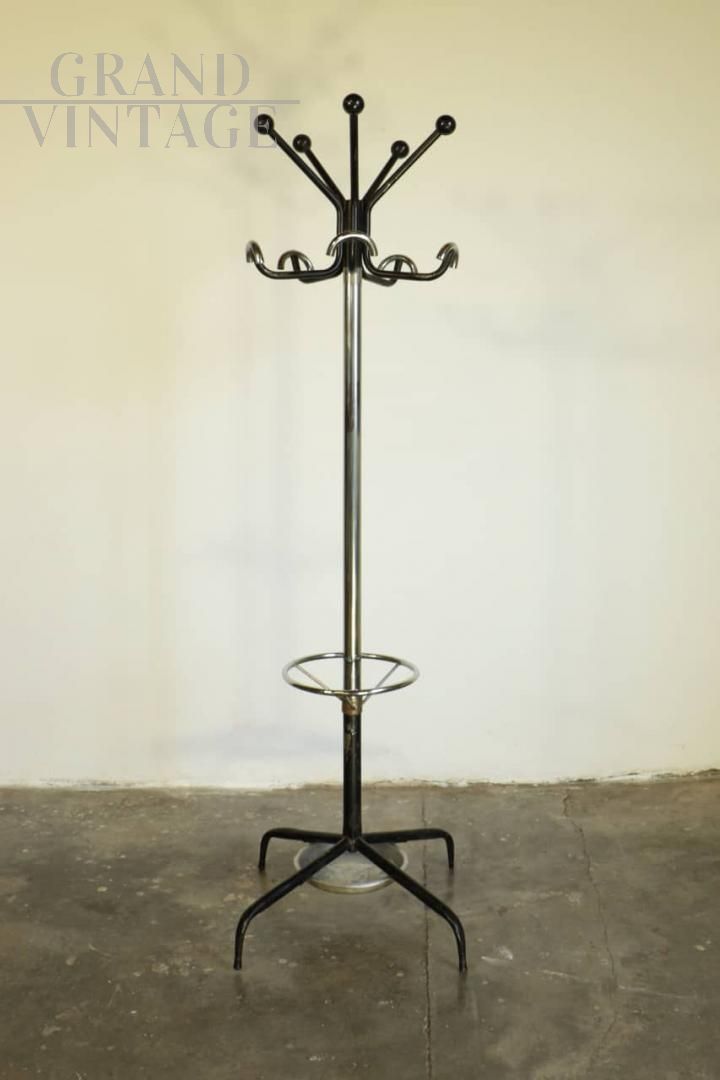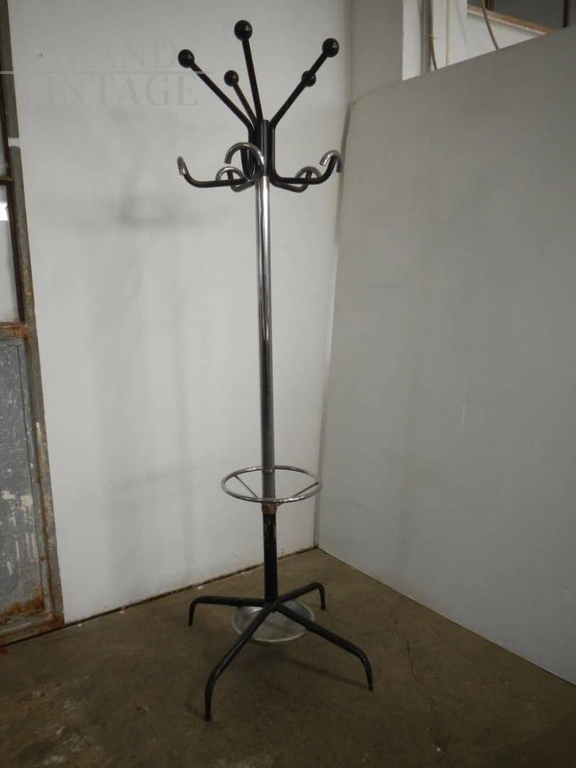Attaccapanni appendiabiti vintage con portaombrelli, in metallo cromato, anni '70.