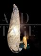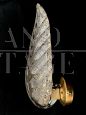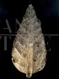 L'oggetto è costituito da una struttura portante in ottone da fissare alla parete e da una foglia bianca in vetro di Murano, lavorazione a mano.