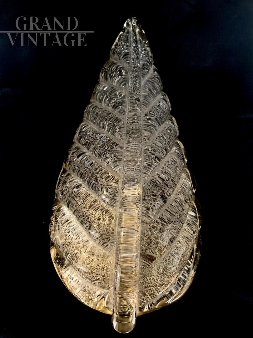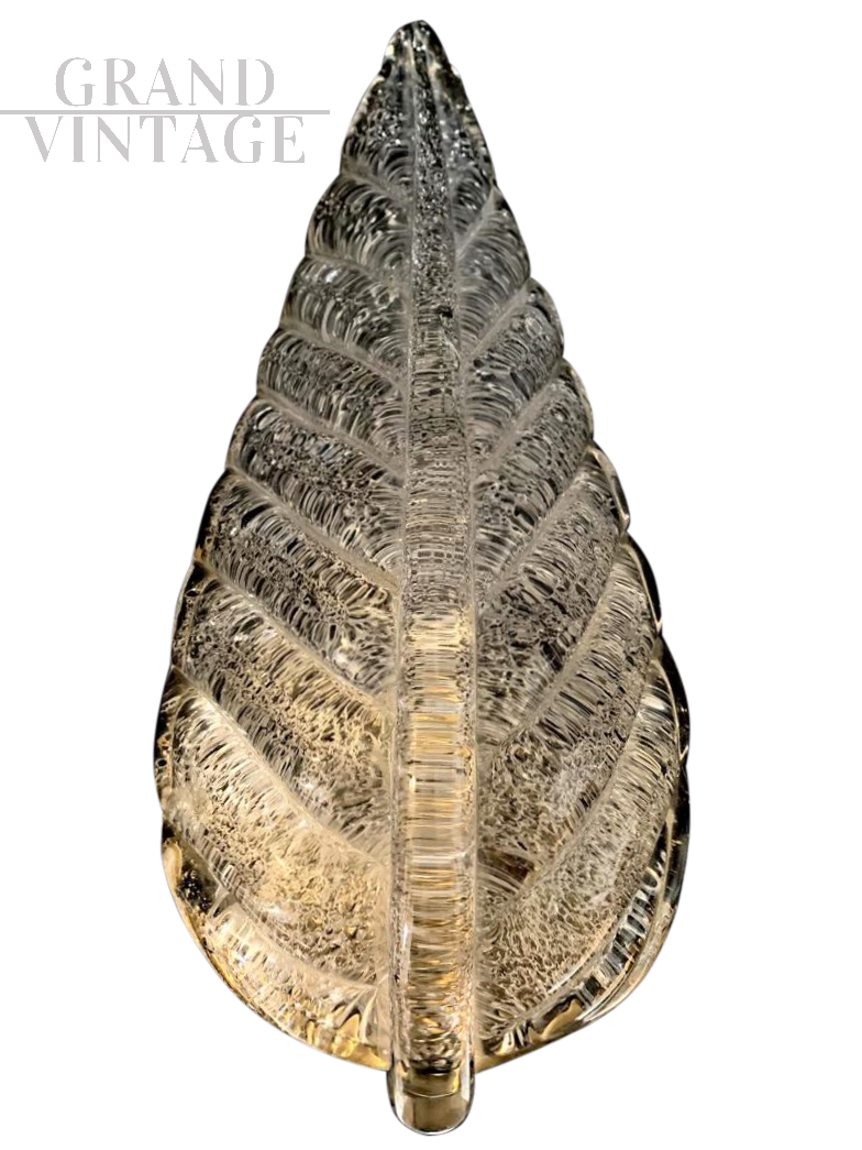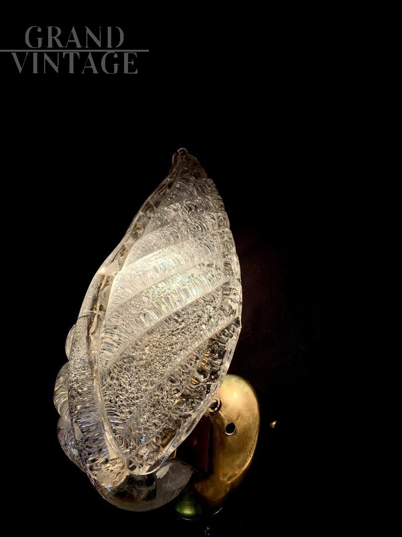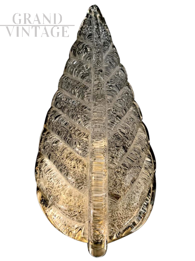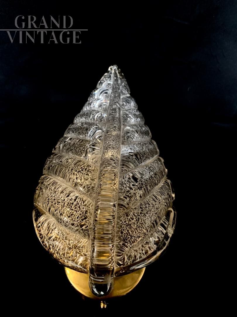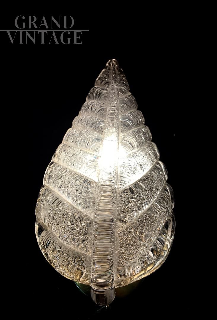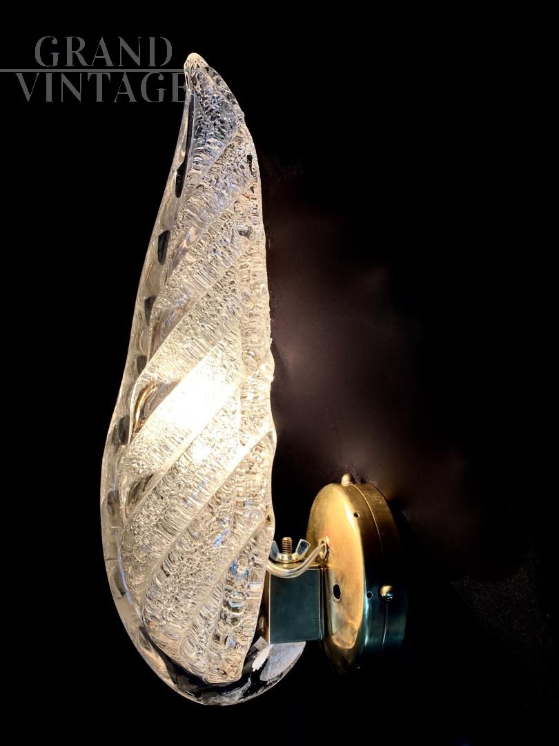 Applique a foglia bianca, vetro Murano, ditta Seguso