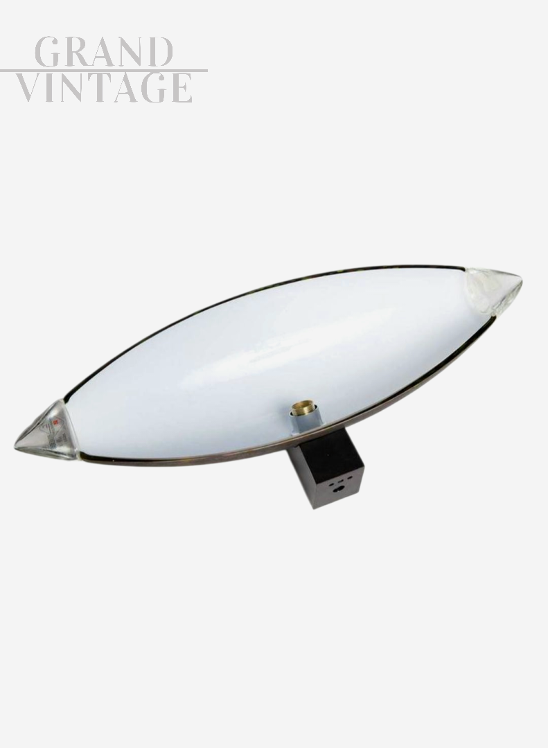 Elegante applique lampada da parete in vetro di Murano bianco lattimo dalla bella forma ogivale, realizzata negli anni '80 nelle famose vetrerie Barovier &. Toso. La lampada è in ottime condizioni, praticamente nuova, con attacco elettrico originale, si tratta di un modello piuttosto raro.