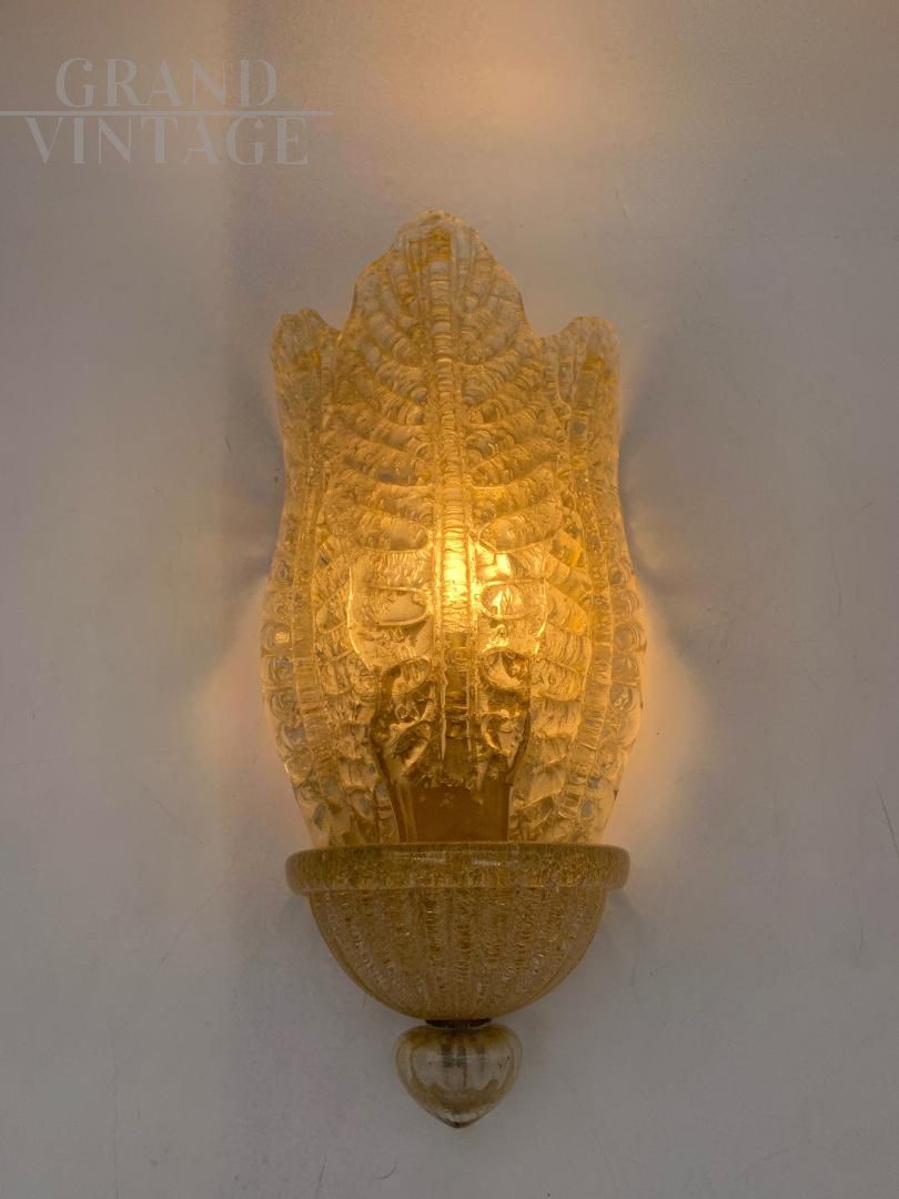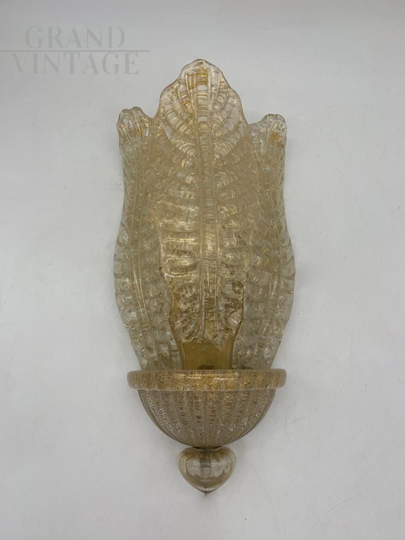 Applique lampada da parete in vetro di Murano dorato, attr. Barovier