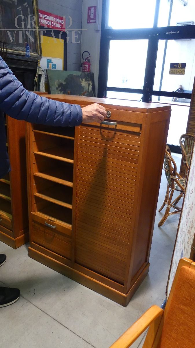 Archivio schedario a serranda doppia in rovere