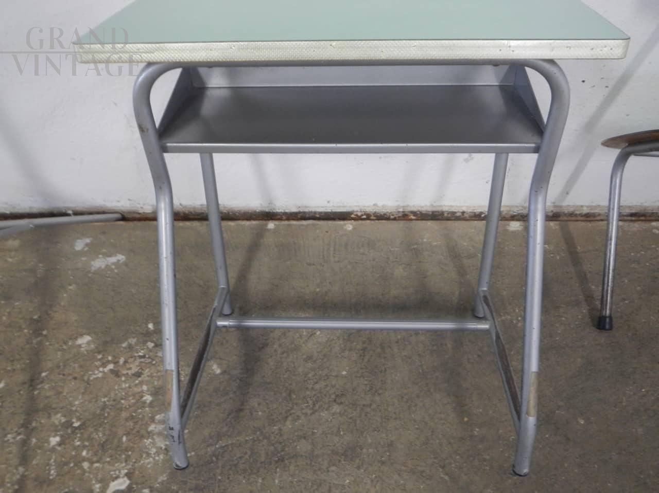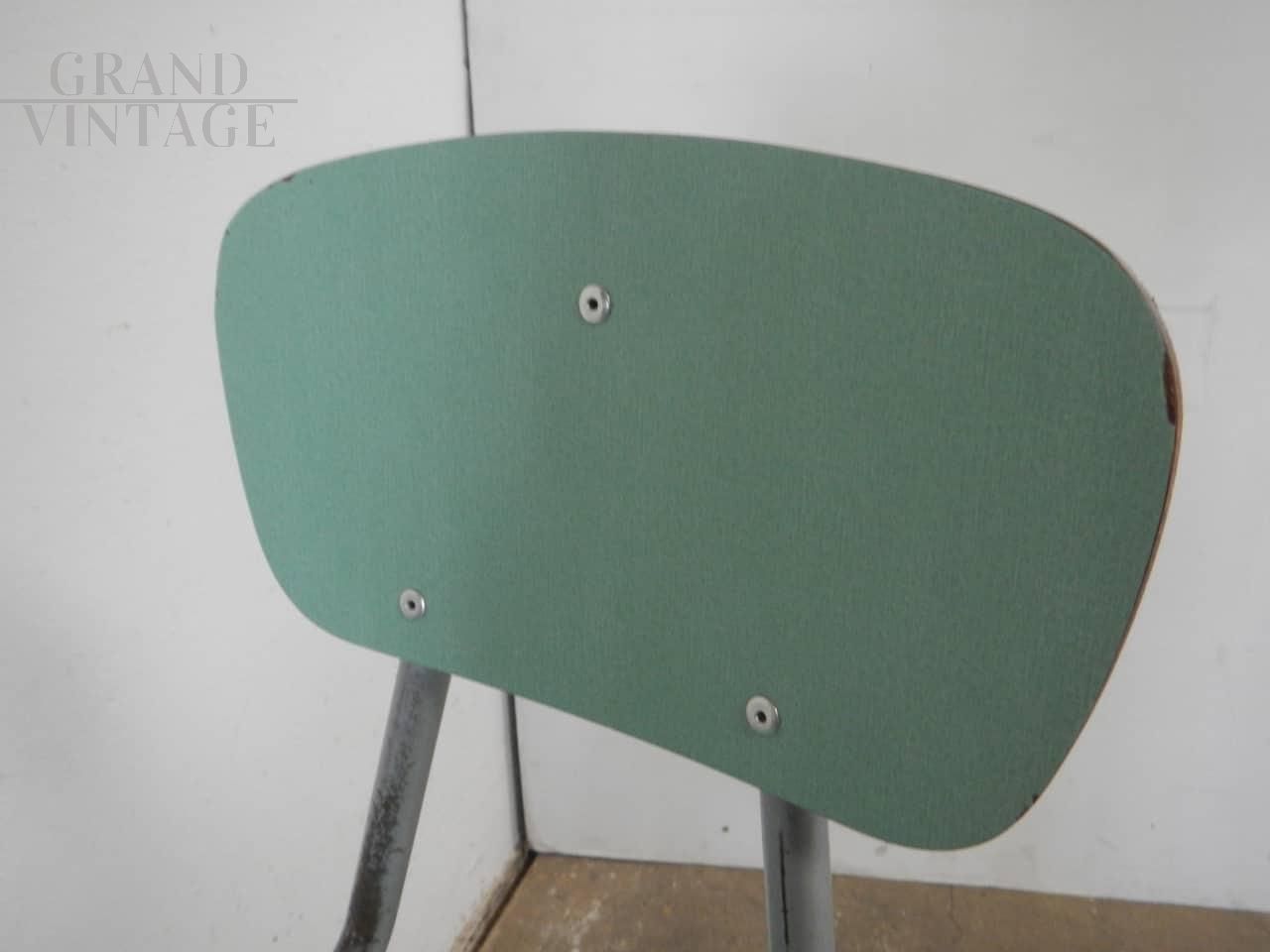 Banco scolastico vintage in formica verde con sedia, anni '70
