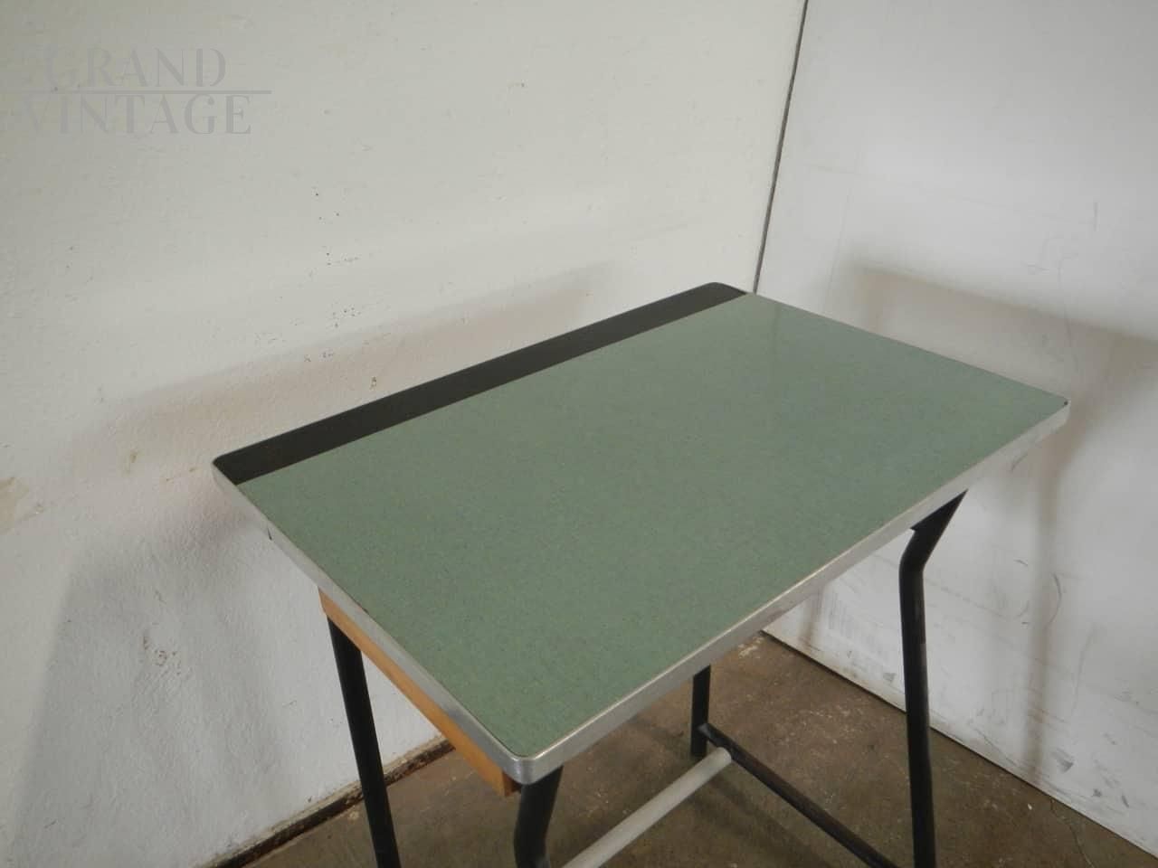 Banco scolastico vintage anni '70 in formica verde