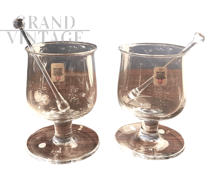 Bicchiere da cocktail in vetro Holmegaard, design Danese di alta qualità, da ditta paragonabile alla nostra Venini, completo di scatola originale, in ottime condizioni poiché si tratta di un fondo di magazzino.