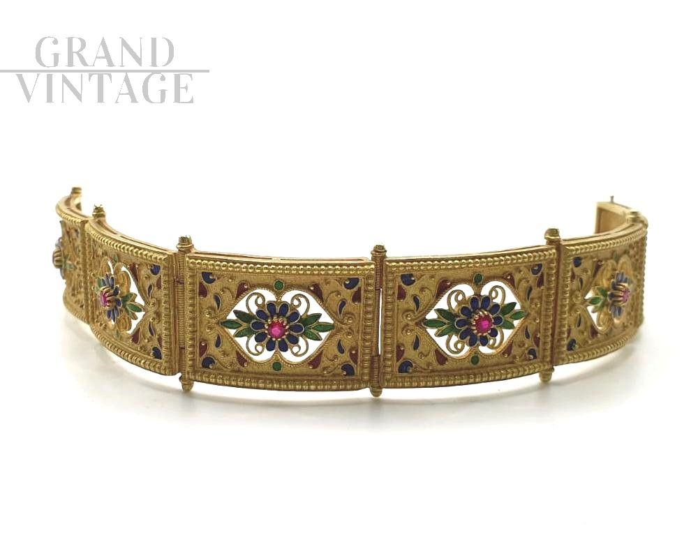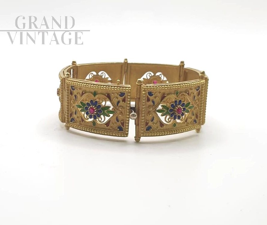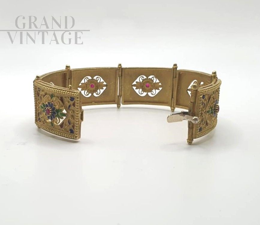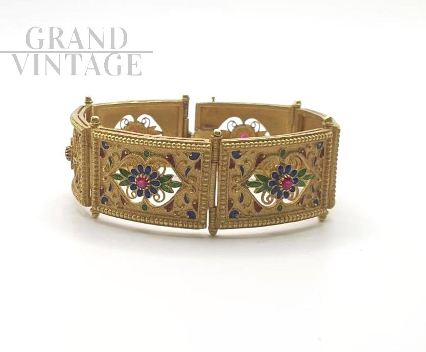 Bracciale vintage in oro giallo con fiori in pietre preziose