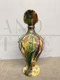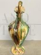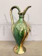 Brocca antica in maiolica dei primi del '900, di produzione popolare, dipinta nel sud Italia nei colori verde, giallo e marrone. Buono lo stato generale.