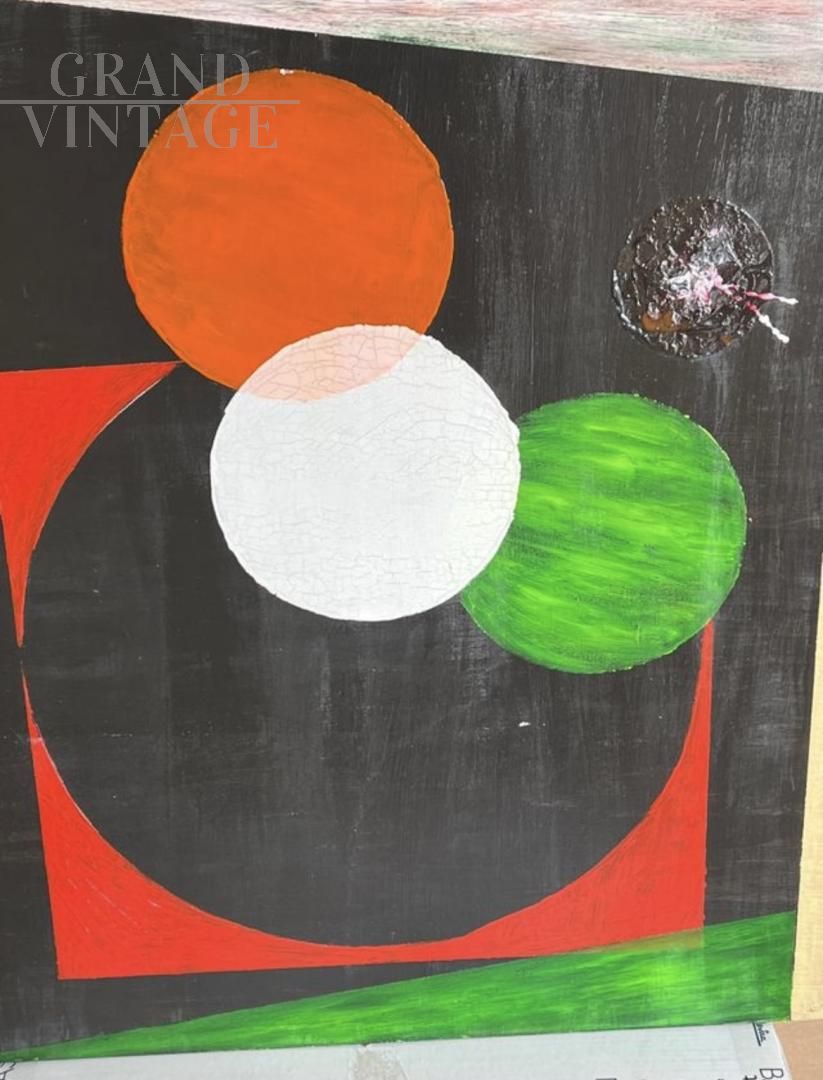 Dipinto astrattista dei 2023 realizzato dall'artista siciliano Bruno Carlino (1952) su tavola con tempera e smalto, dal titolo Sfere. Un'opera quasi tridimensionale dove i protagonisti principali sono le sfere, pianeti di vari colori e dimensioni che si intersecano tra loro. Dipinto ideale per ambienti moderni, munito di certificato di originalità.
